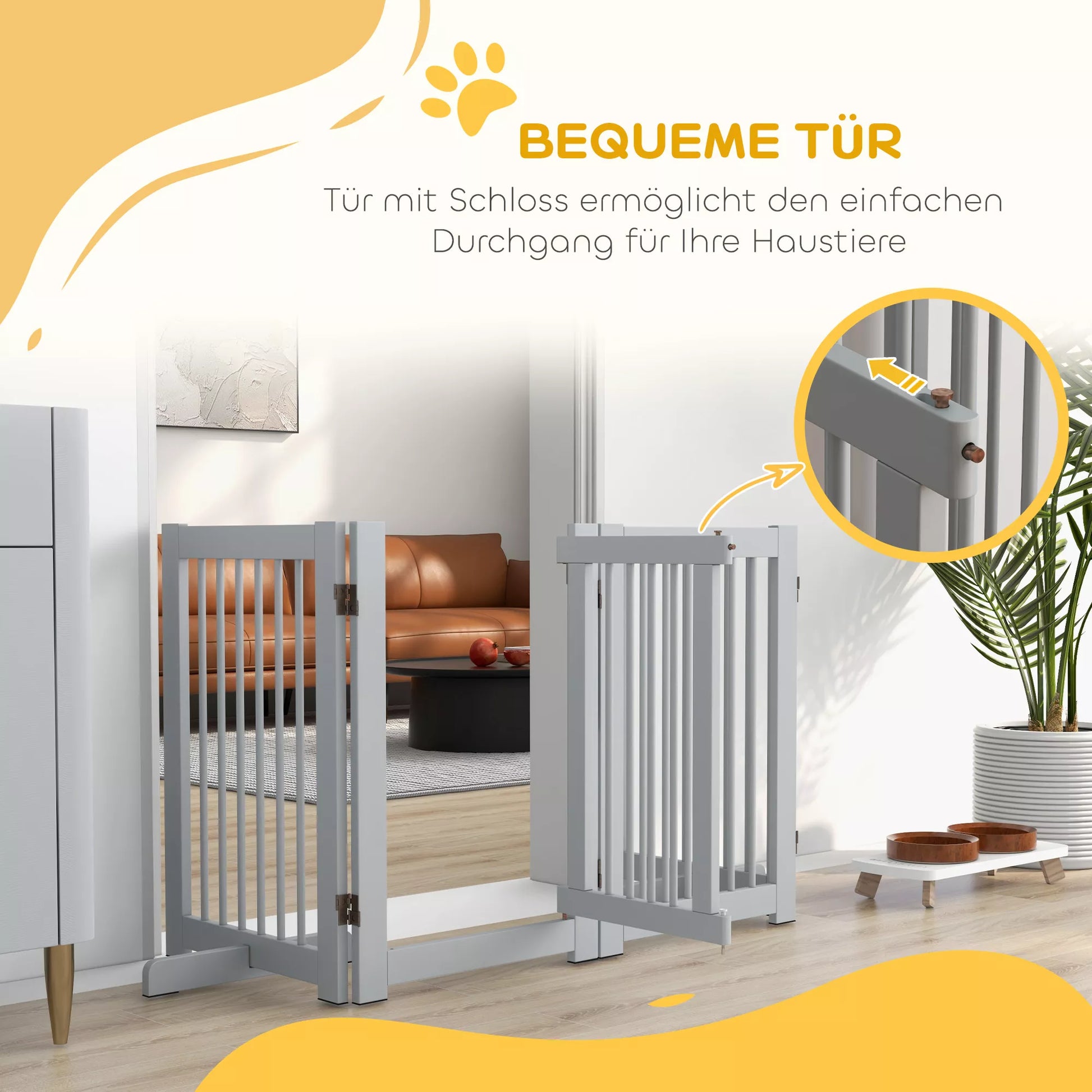 Atraskite „PawHut“ šunų vartelius su durelėmis – puikus saugumo ir stiliaus derinys jūsų namams. Su 4 sulankstomais skydais laisvai pastatomi šunų apsauginiai varteliai lanksčiai prisitaiko prie jūsų poreikių. Integruotos durelės leidžia jūsų augintiniui lengvai įeiti ir išeiti. Dėl kompaktiškos sulankstymo funkcijos vartelius galima laikyti sutaupant vietos. Saugokite savo augintinius ir kartu puoškite savo namus – su „PawHut“.