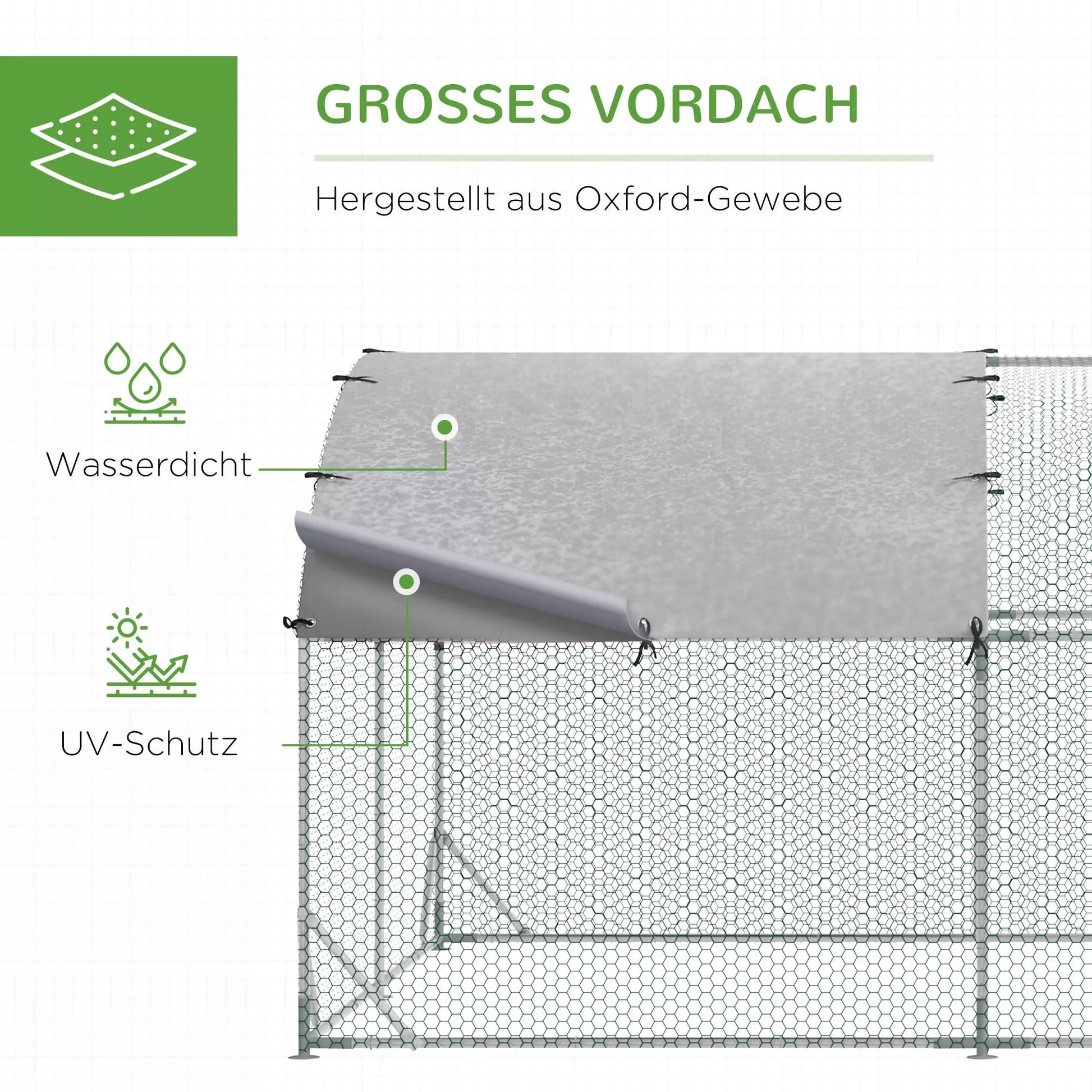 Šešiakampė šio aptvaro tinklinė tvora užtikrina gerą oro cirkuliaciją, o stogas apsaugo nuo karščio ir lietaus. Lauko aptvaro plotas yra pakankamai didelis 6-12 vištoms, suteikiantis joms daug judėjimo laisvės. Uždarius aptvaro duris, jūsų augintiniai bus saugūs.