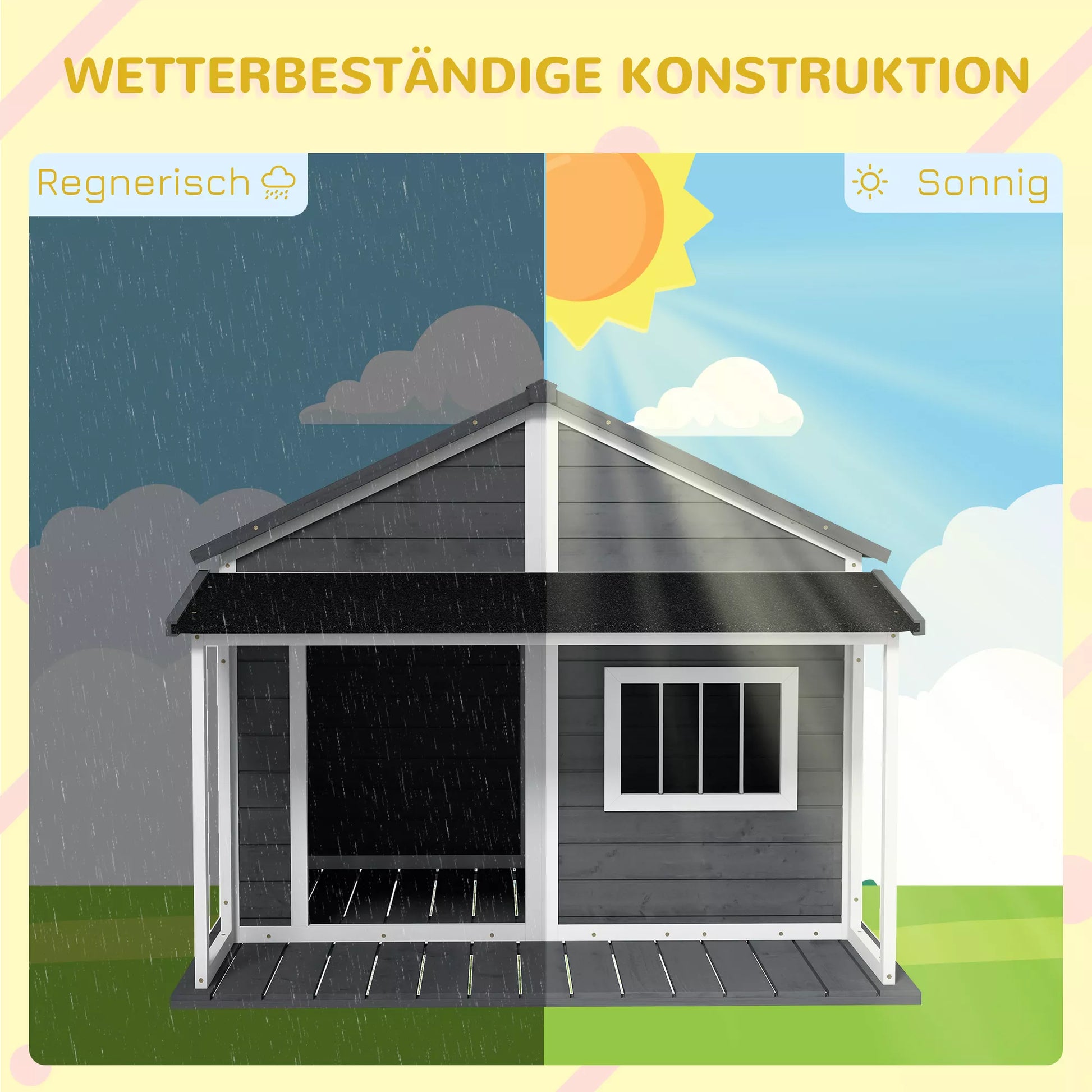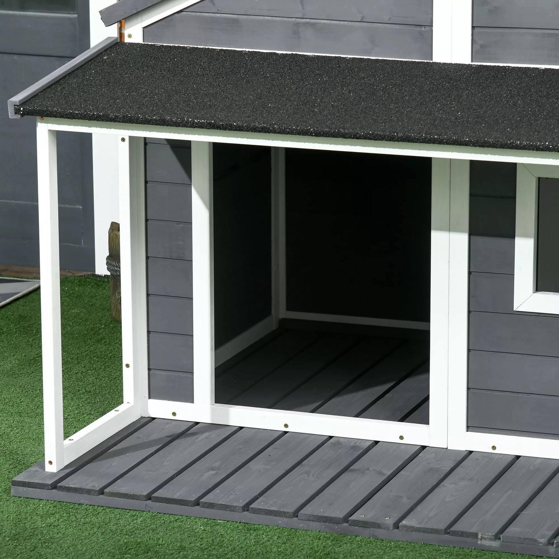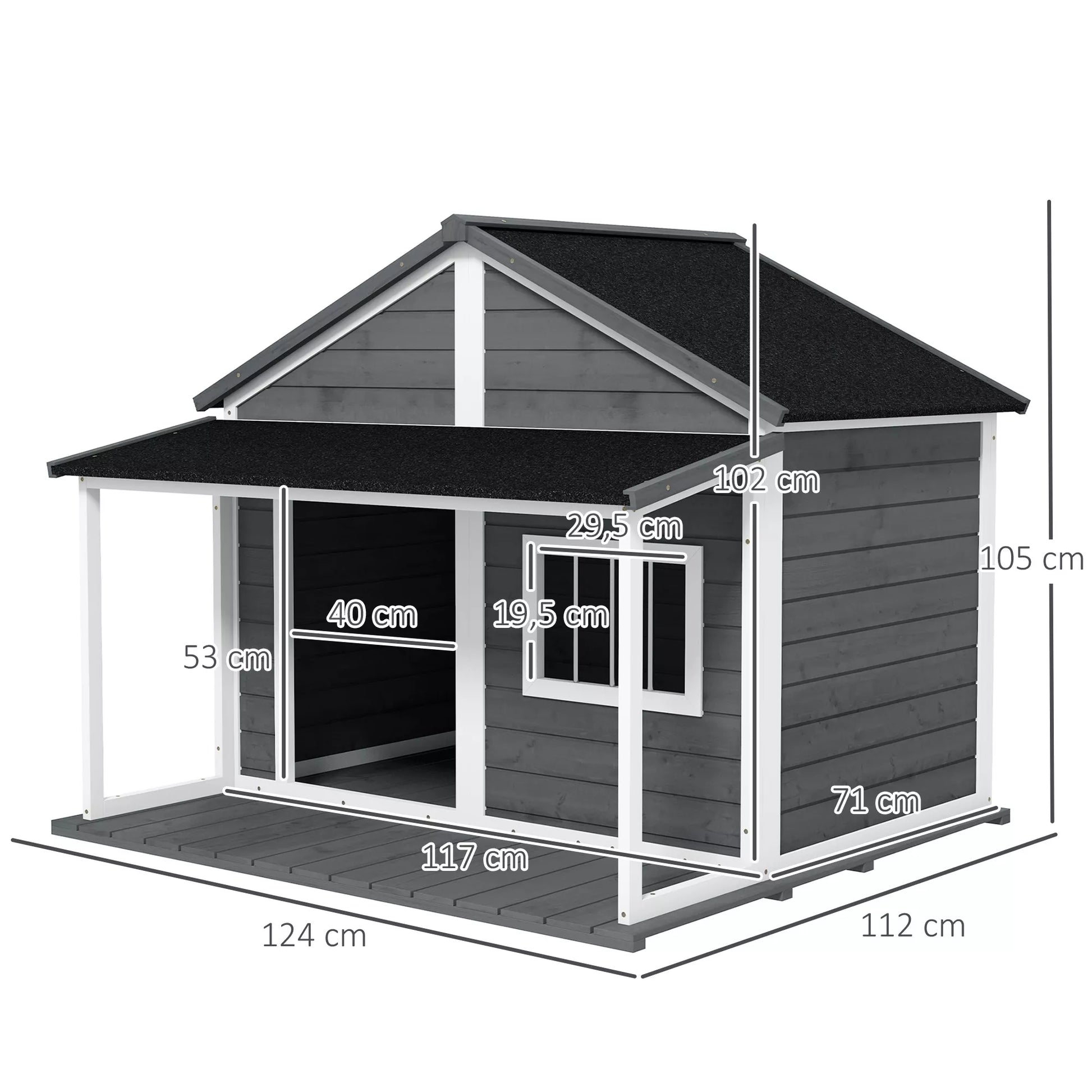 Lauko šunidė, su veranda, atspari oro sąlygoms, 124 cm x 112 cm x 105 cm, Pilka + Balta
