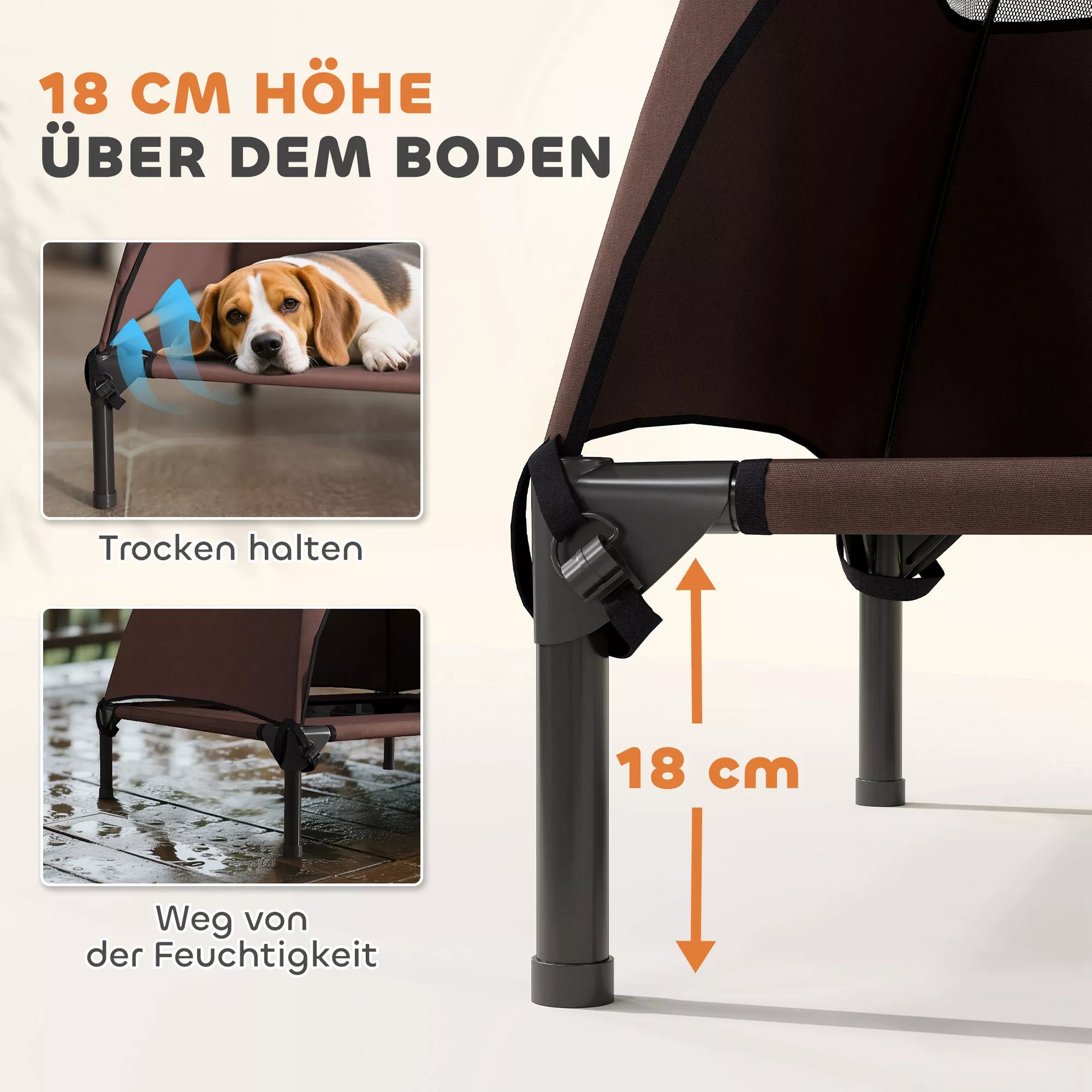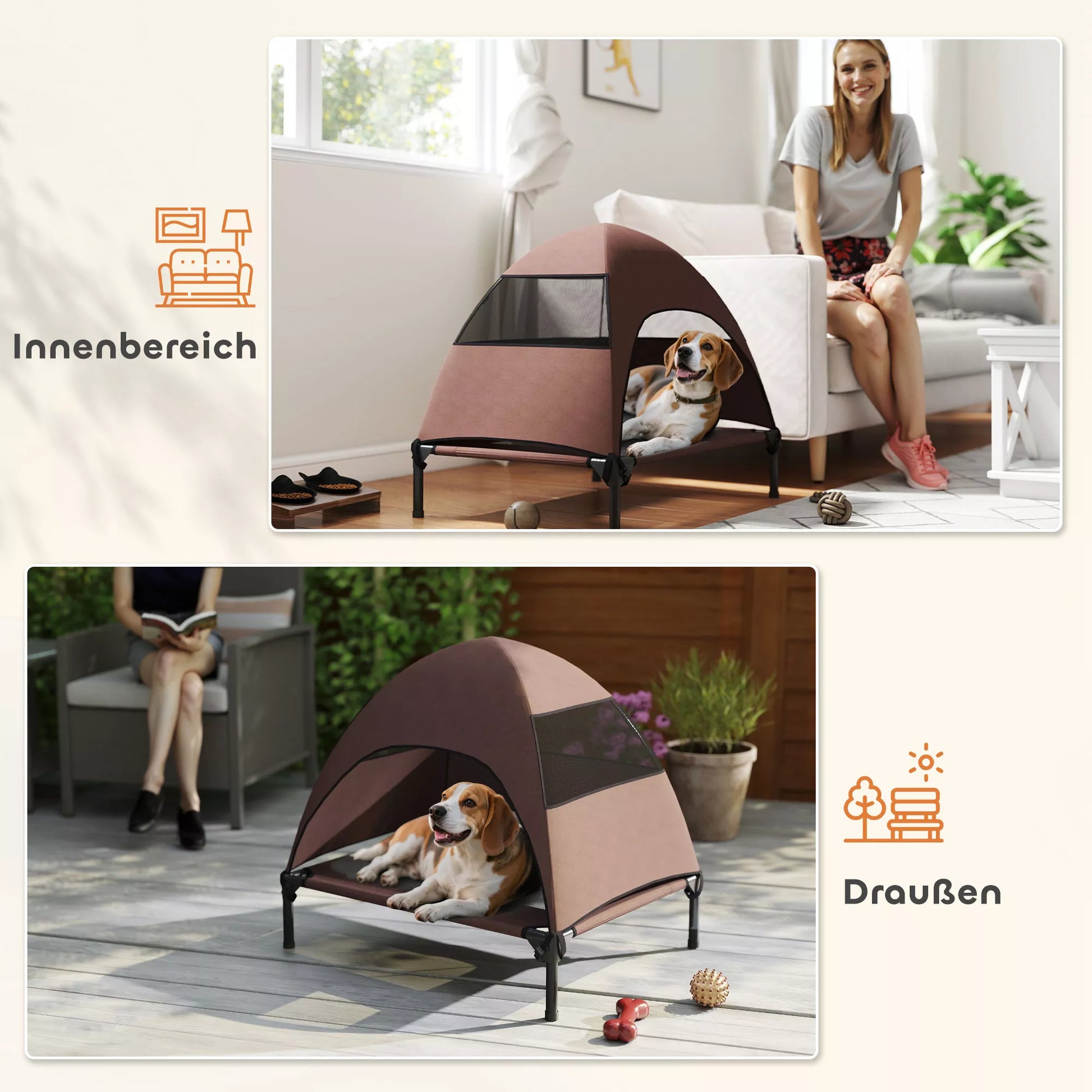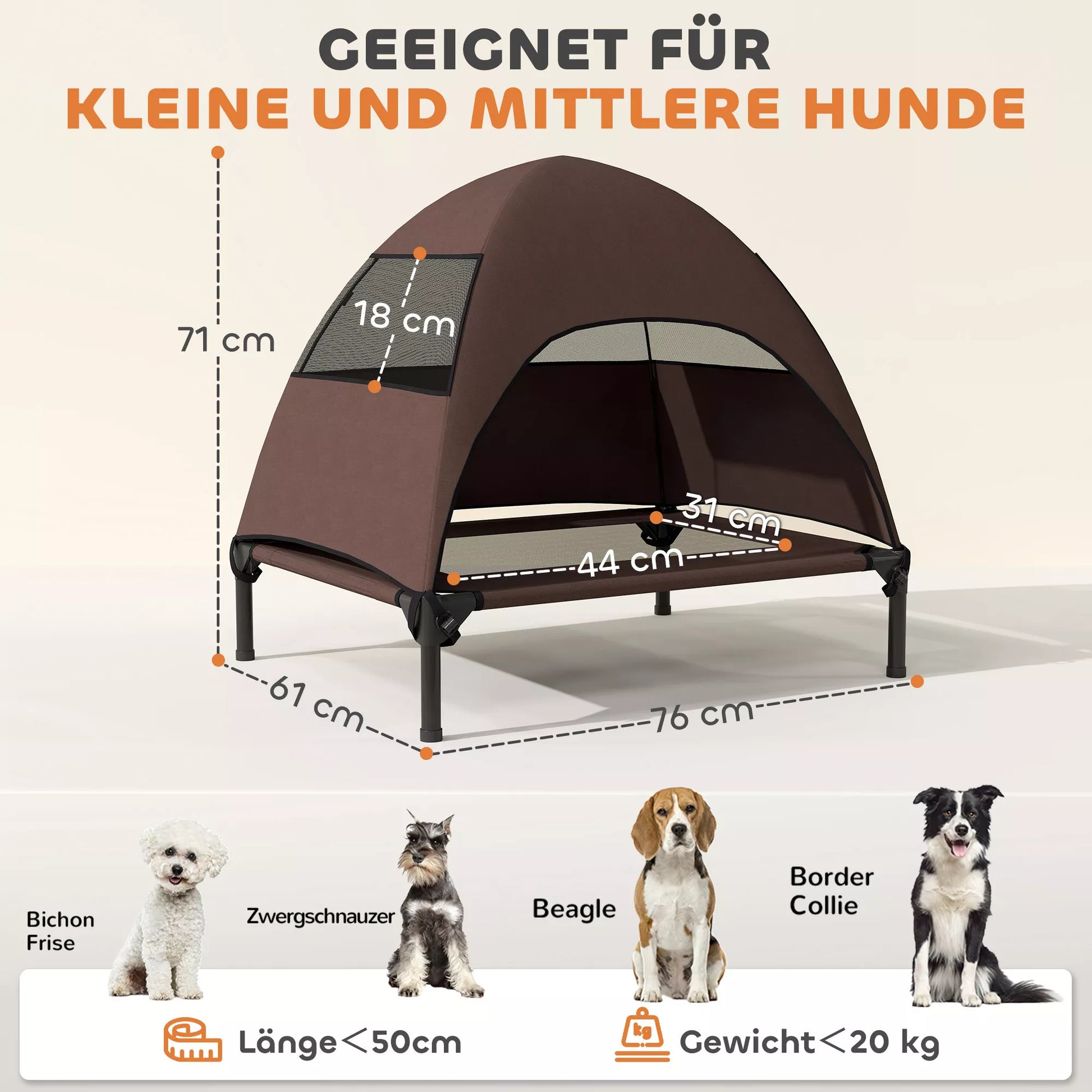 Lauko šunų gultas su stogeliu, paaukštinta šunų lova vidutinio dydžio šunims, 76 x 61 x 71 cm, kavos spalvos