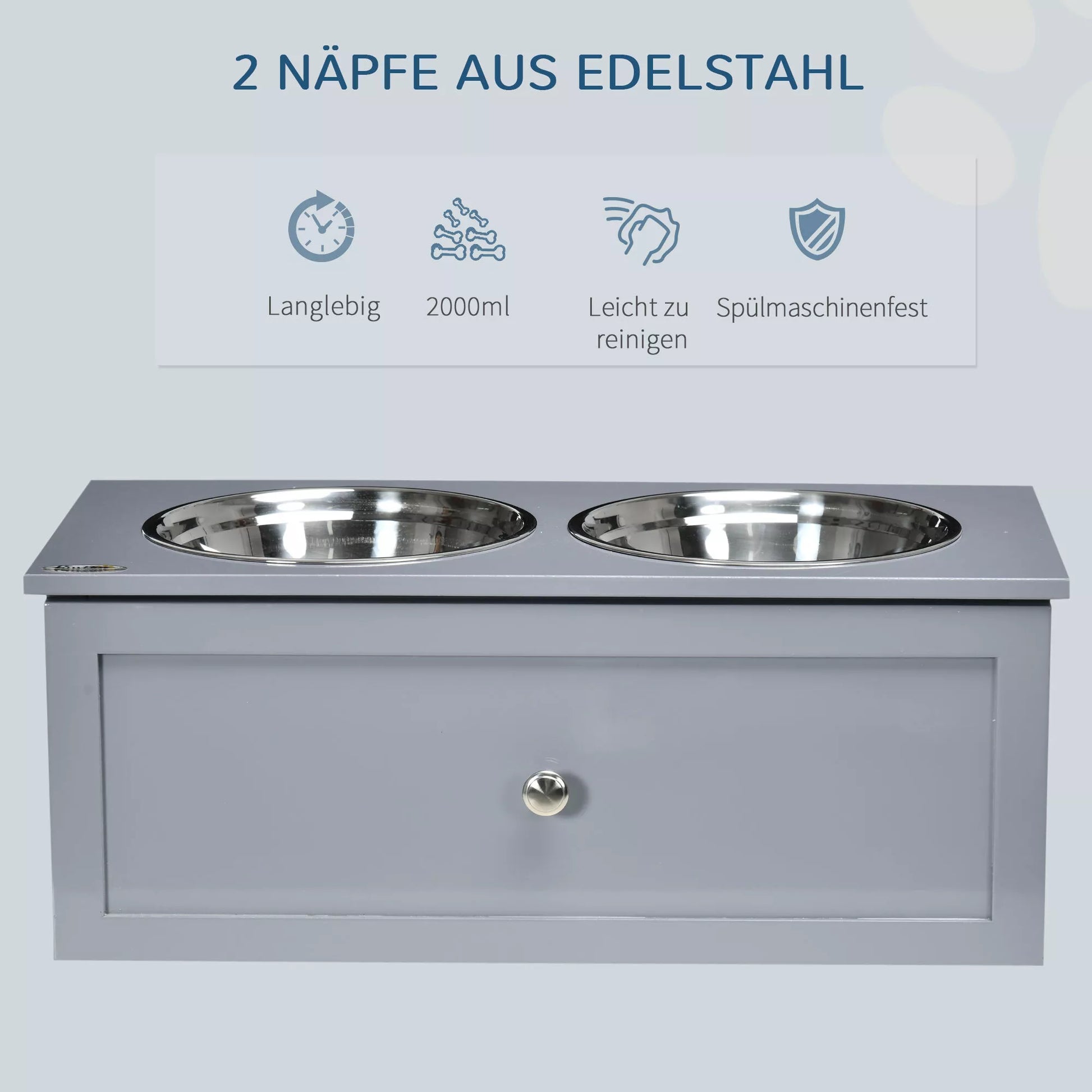 Lesinimo stotis, 2 dubenėliai po 2 litrus, nerūdijančio plieno, su stalčiumi, vidutinio dydžio šunims, pilka, 60 x 30 x 24cm