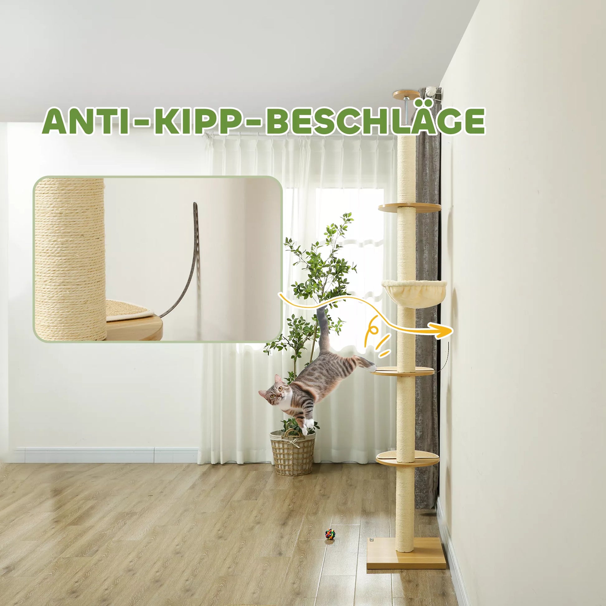 Suteikite savo plaukuotajam draugui rojų, kurio jis nusipelnė! Mūsų nuo lubų iki grindų siekiantis draskyklė suteikia kelias platformas poilsiui ir saulės vonioms, idealiai tinka aktyvioms kačių šeimoms. Didelis dangų siekiančios kačių draskyklės draskomasis paviršius leis jūsų augintiniams išsitiesti ir galąsti nagus. Jūsų katės pamėgs šią draskyklę ir puikiai pramogaus. Sukurkite nuotykių ir atsipalaidavimo namus savo švelniaplaukiams!