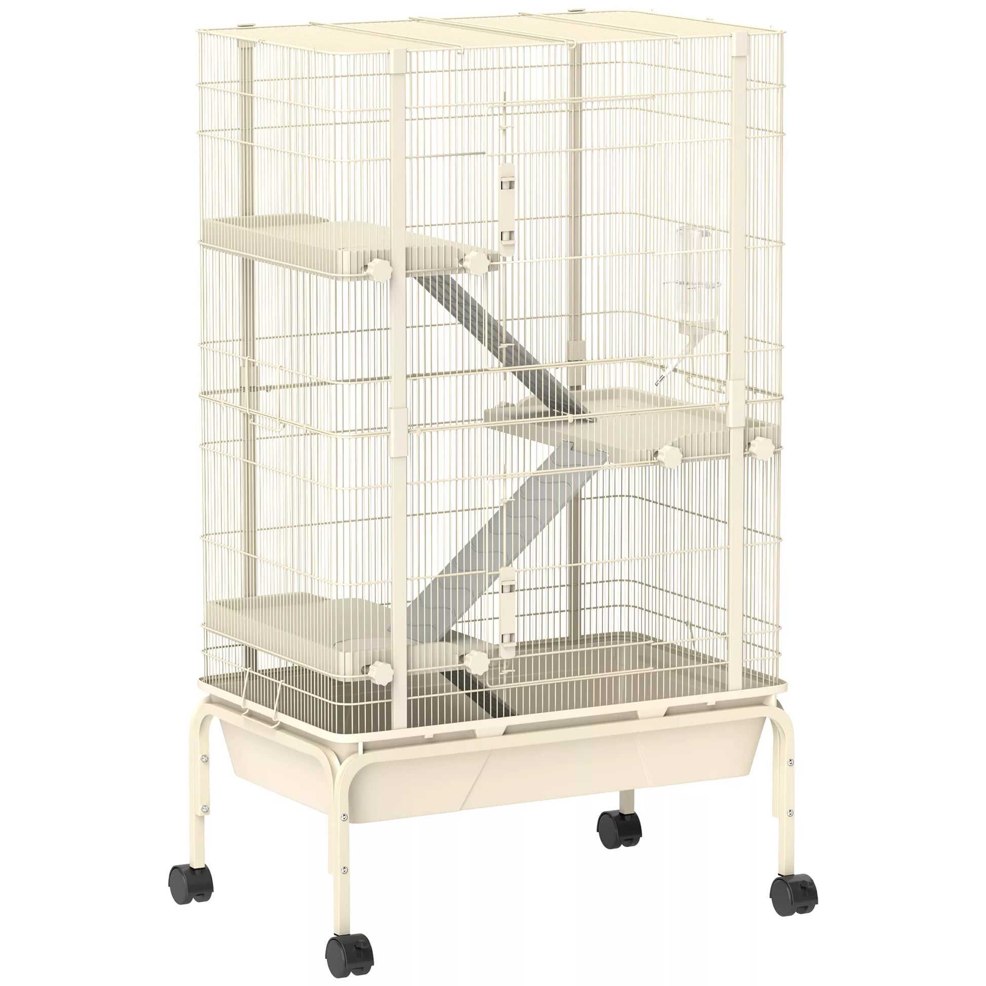 Mažų gyvūnų narvas, naminių gyvūnų narvas su 4 lygiais, pašaro dubuo, vandens butelis, 88 x 48 x 150,5 cm, smėlio spalvos
