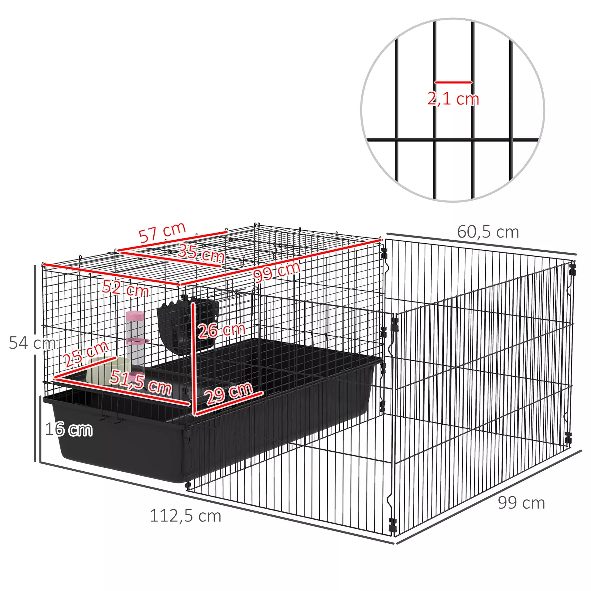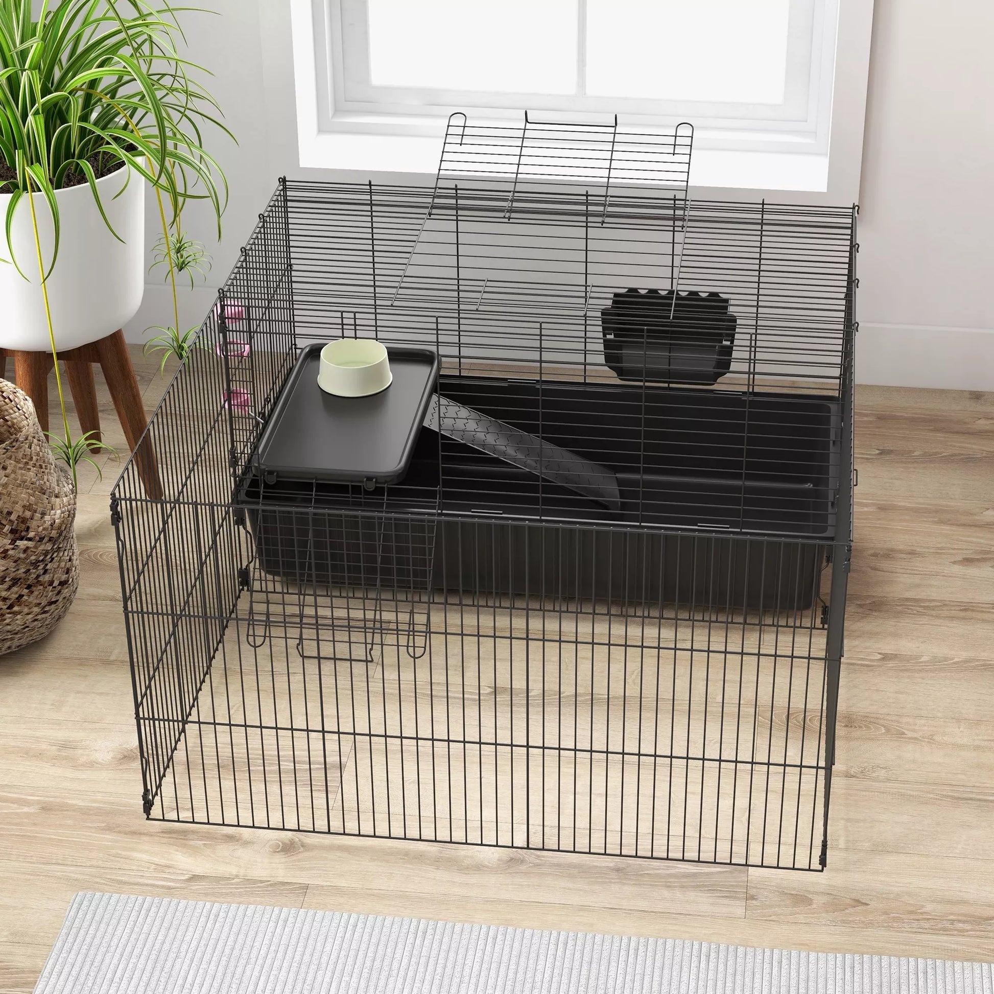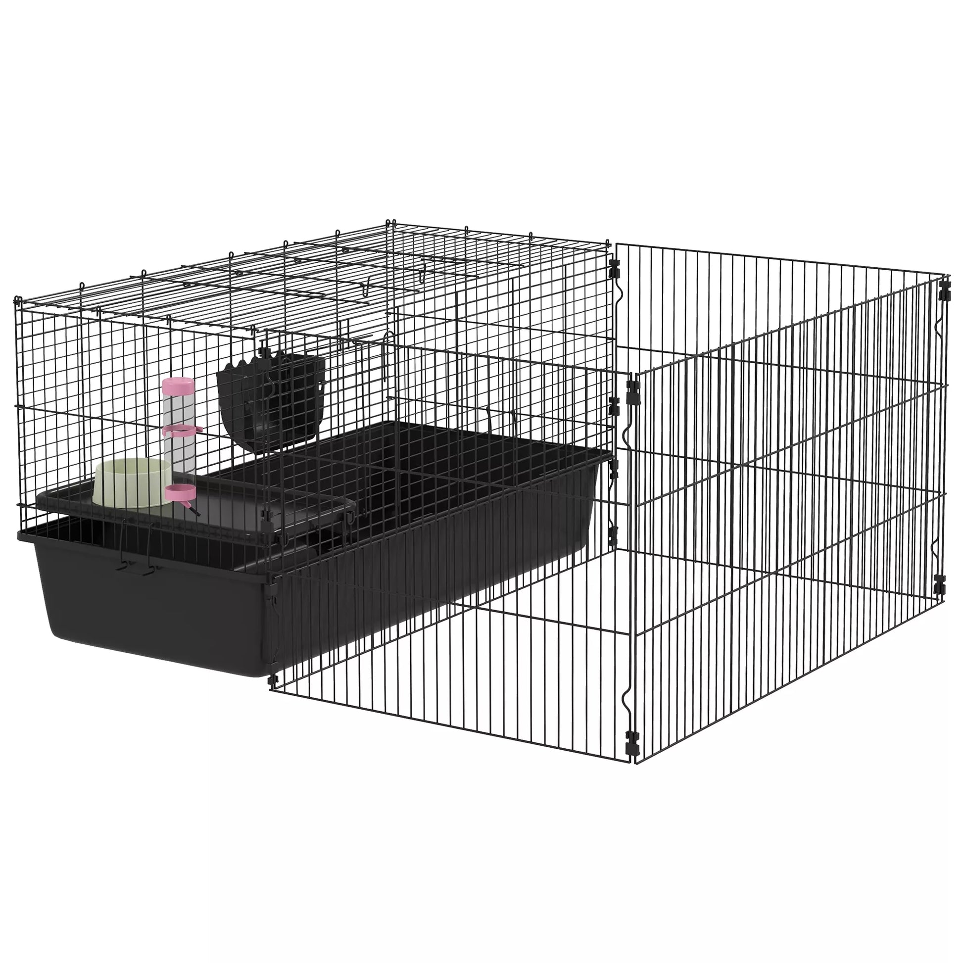 Mažų gyvūnų narvas su nuimamu aptvaru, maniežas su narvu, įskaitant priedus, juodas