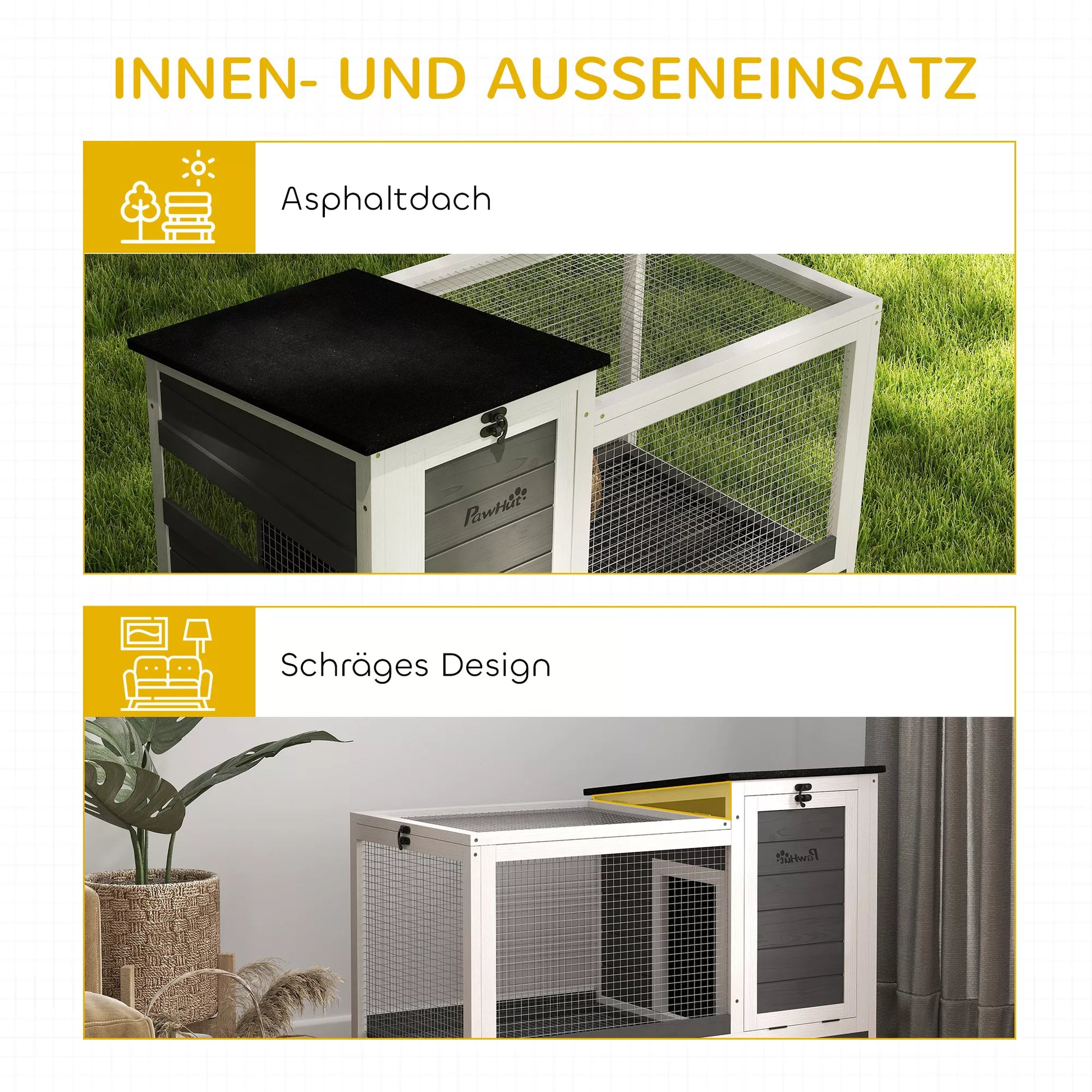 - ✔ Atsparus oro sąlygoms asfalto stogas apsaugo augintinius nuo lietaus