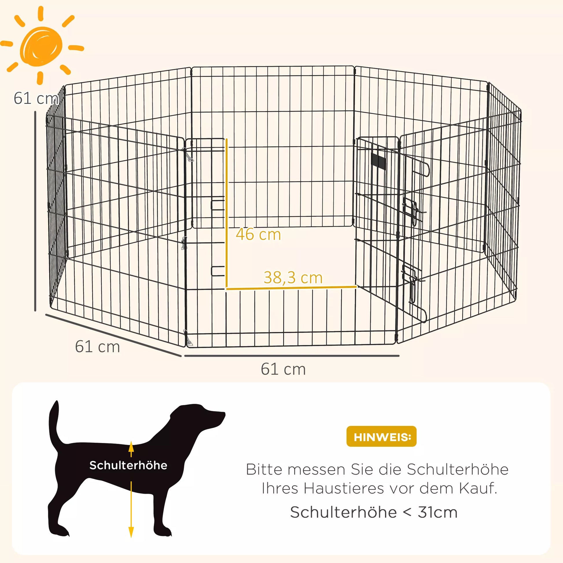 Naminių gyvūnų aptvaras, žaidimų aikštelė šuniukams ir mažiems šunims, su durelėmis, tinka naudoti viduje ir lauke, 61 cm, juodos spalvos