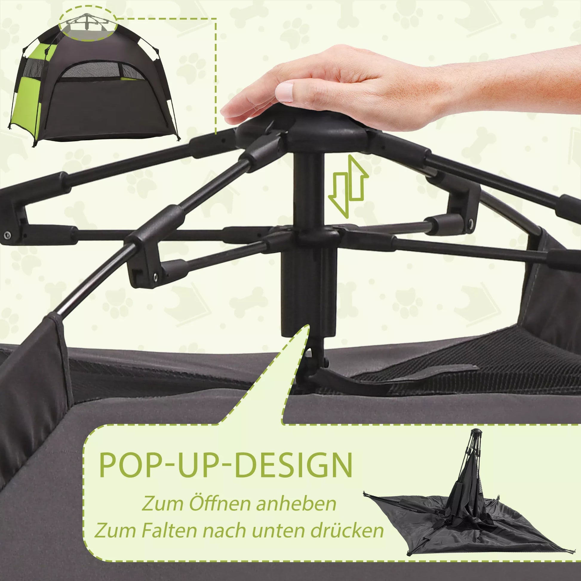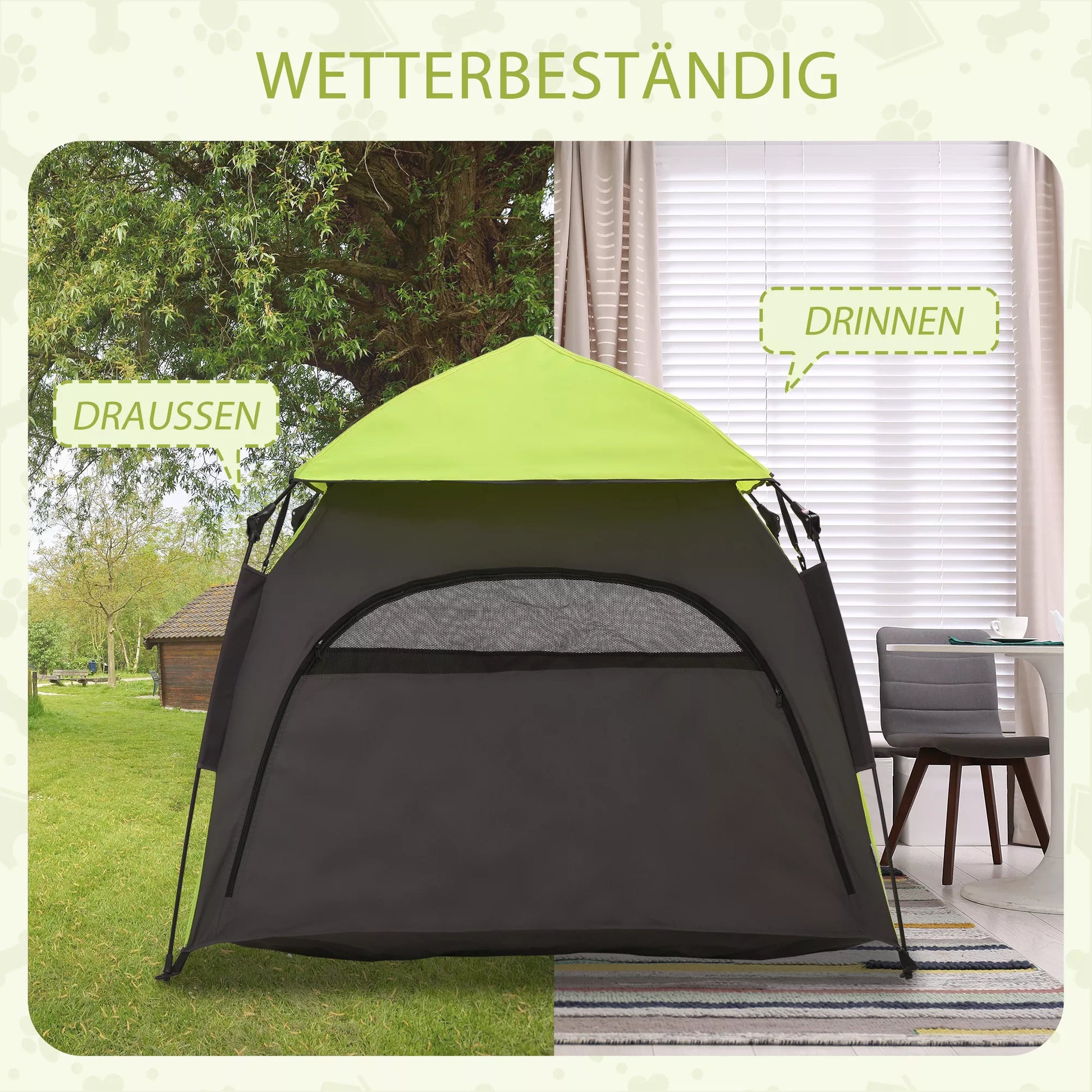 Naminių gyvūnų palapinė Šunų palapinė Lauko gyvūnų palapinė, 110 cm x 110 cm x 85 cm. Grunto smeigės + transportavimo krepšys. Žalia + juoda