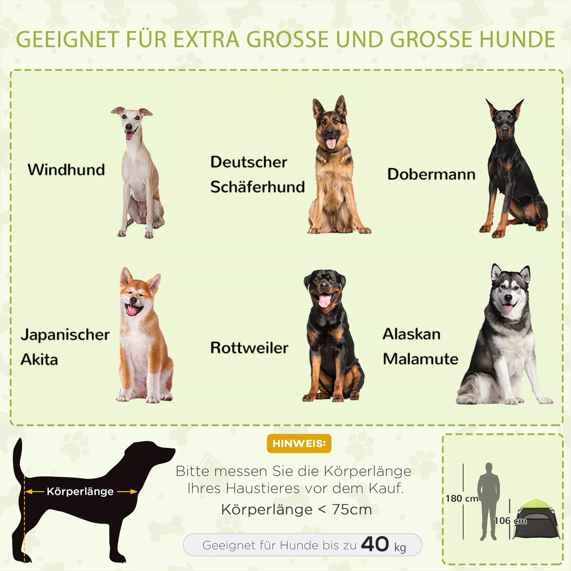- ✔ Tinka labai dideliems ir dideliems šunims, kurių pečių aukštis mažesnis nei 75 cm, o svoris mažesnis nei 40 kg