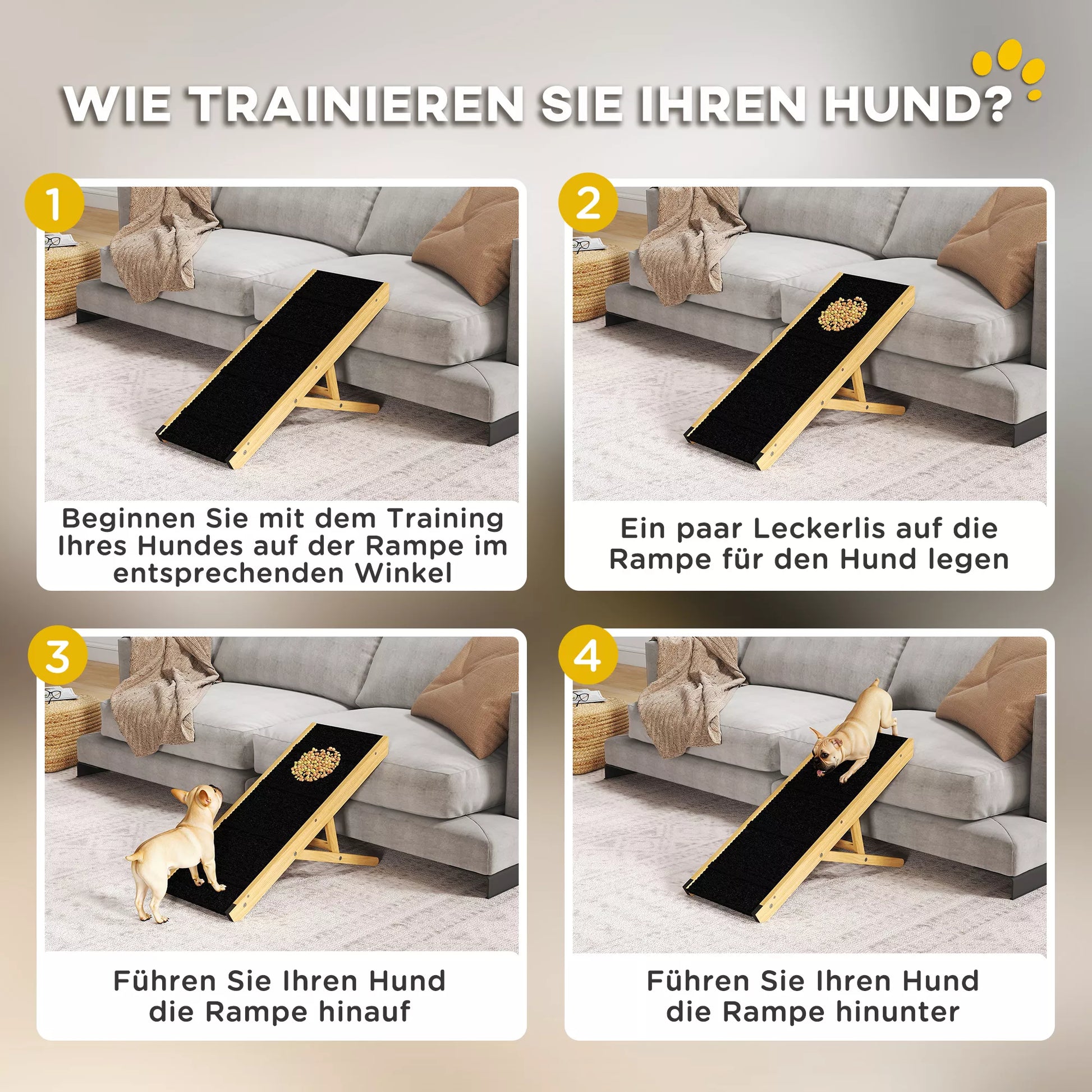 Naminių gyvūnų rampa, reguliuojama, 4 pakopos, neslidži, pušies medžio, sulankstoma, skirta šunims iki 15 kg