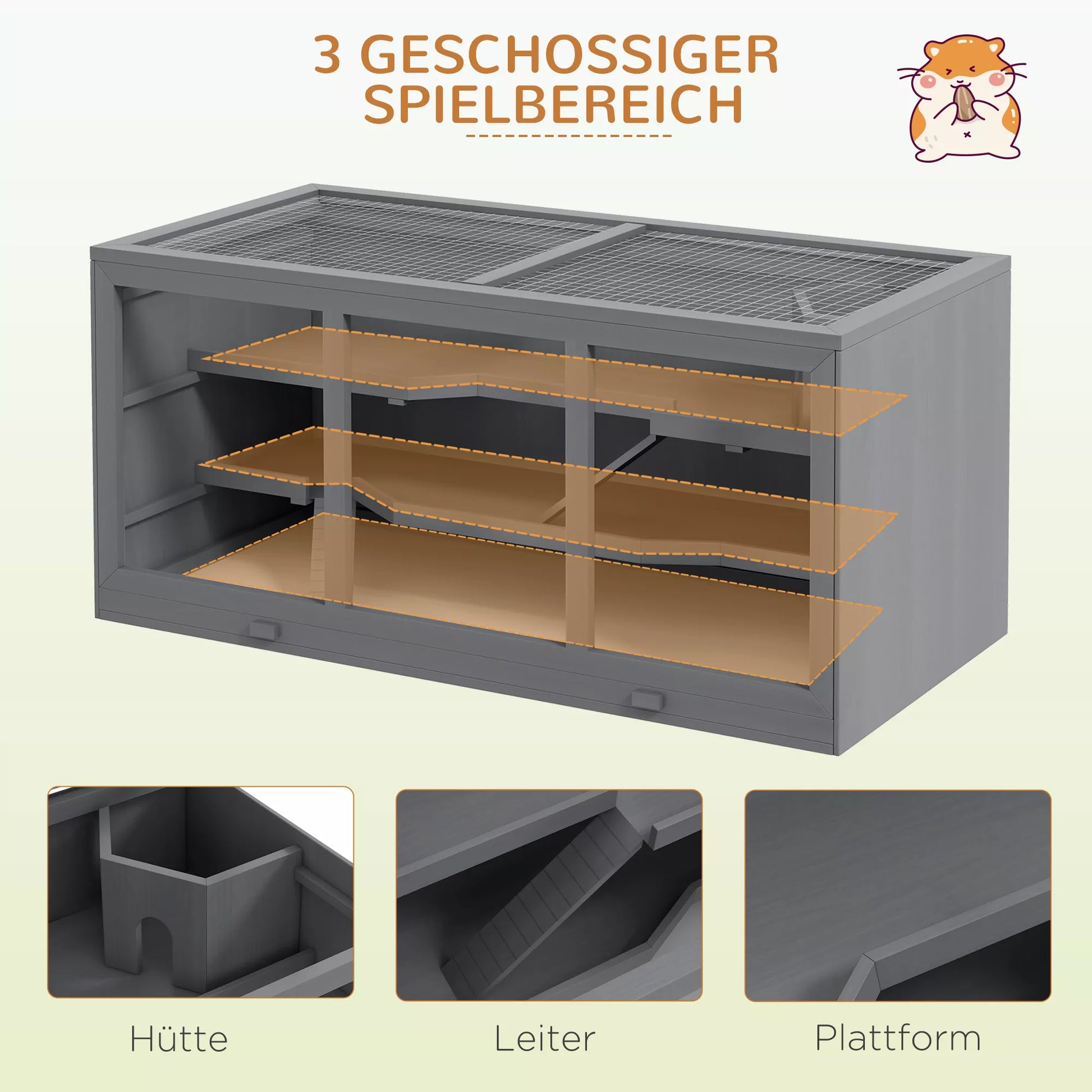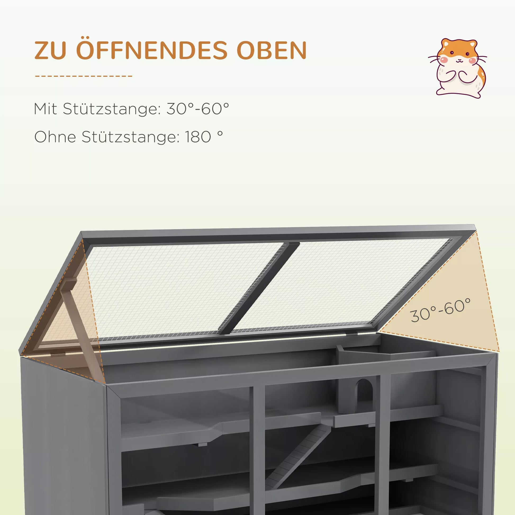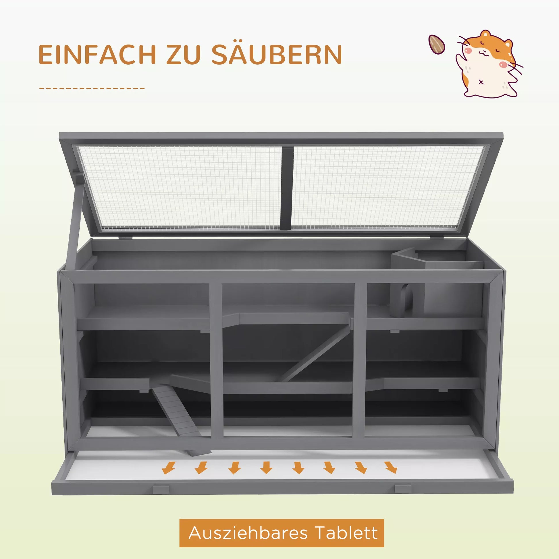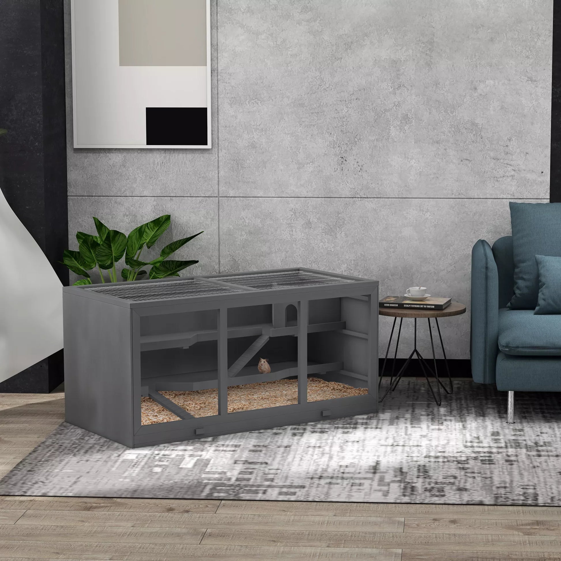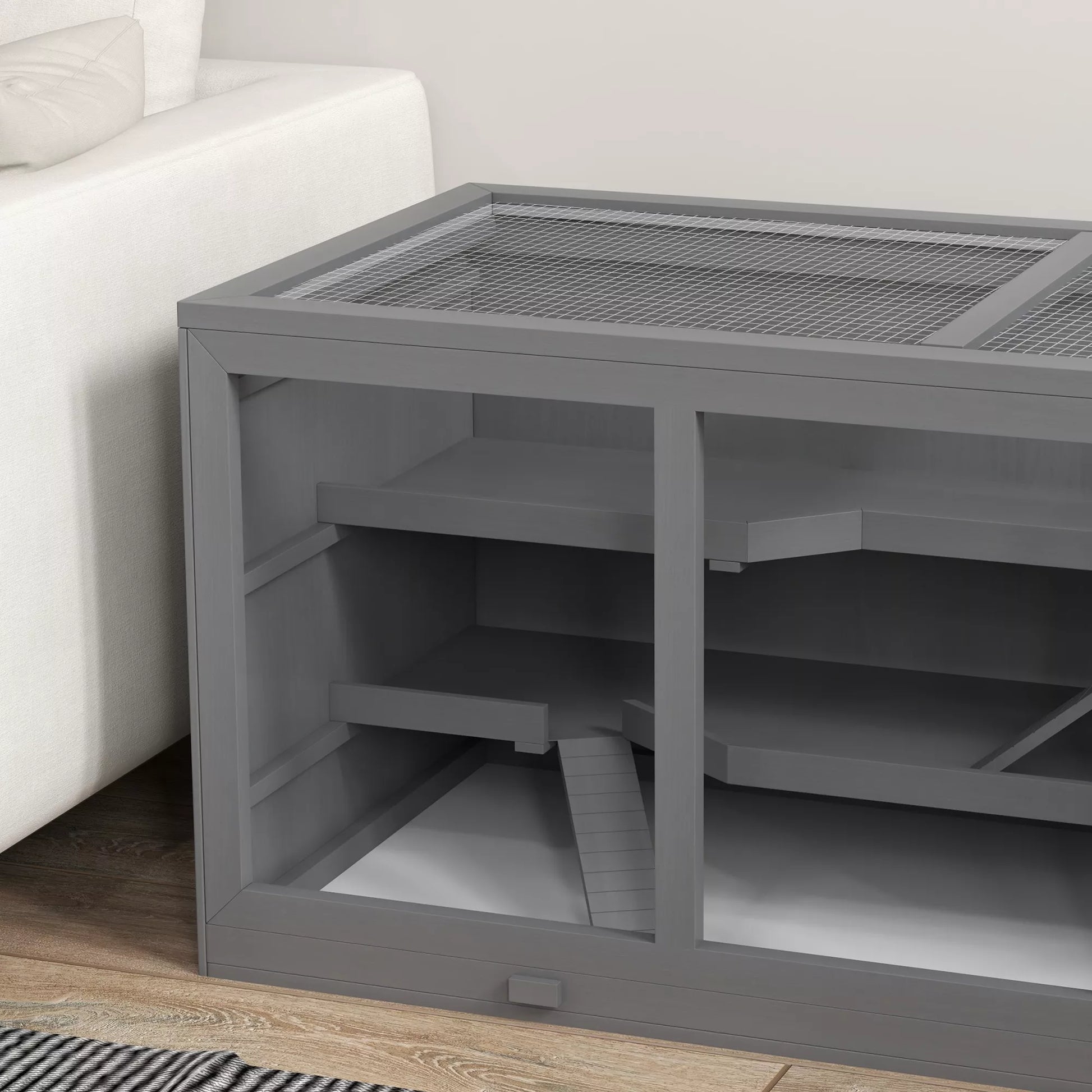 Nykštukinių žiurkėnų narvelis, graužikų narvas, smulkių gyvūnėlių dėžė, užrakinamas, medinis, lengvai prižiūrimas, pilkas