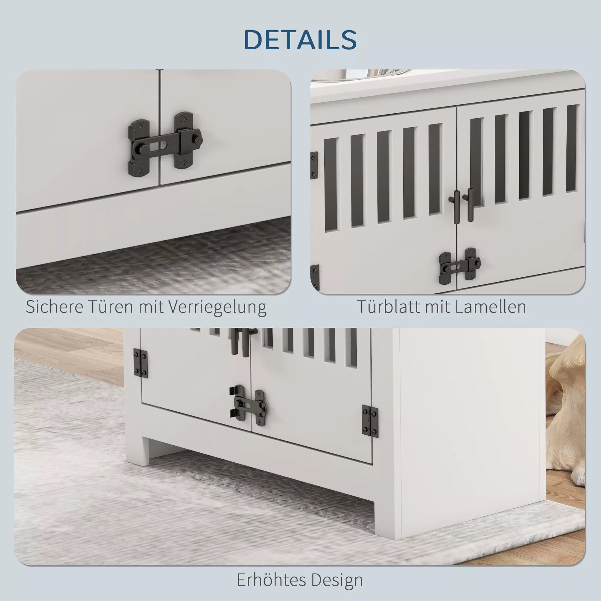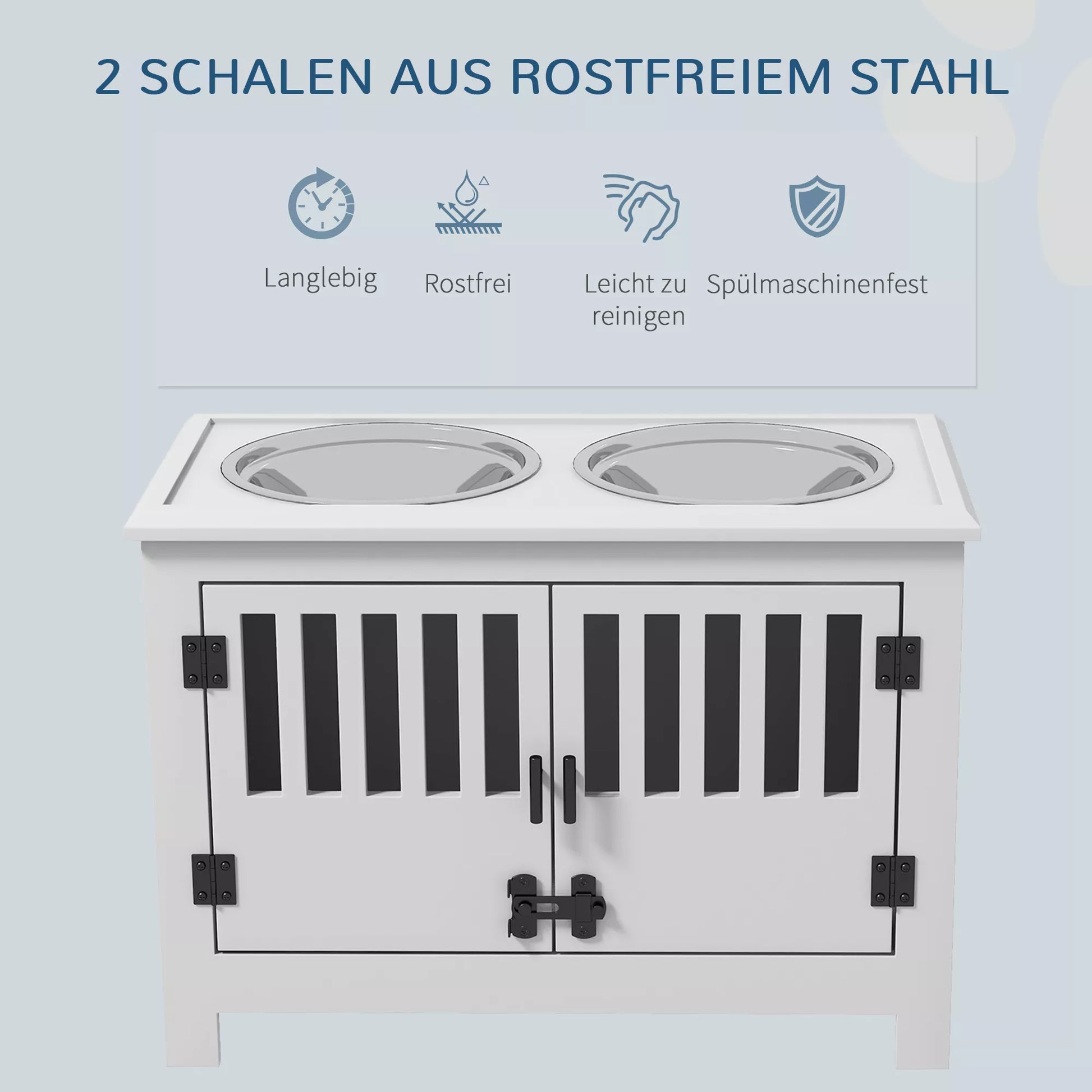 Paaukštinta šėrykla dideliems šunims, 2 nerūdijančio plieno dubenėliai, laikymo vieta, 35,5x60x30 cm, balta