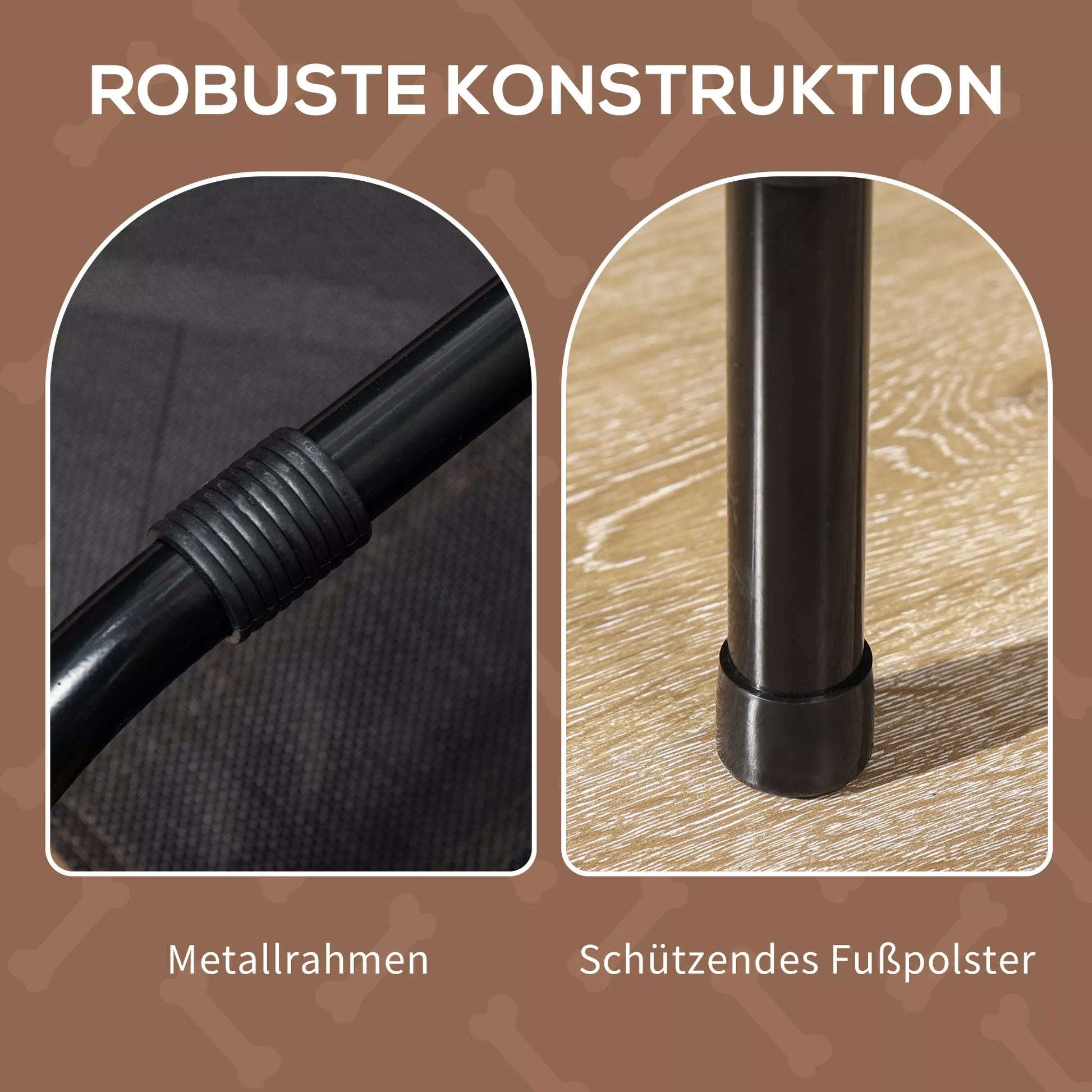 Suteikite savo augintiniui geriausią poilsį su mūsų stilinga augintinio lova! Paaukštinta šunų gulėjimo vieta remiasi keturiais milteliniu būdu dažytais metaliniais vamzdžiais, aplink kuriuos apvyniotas kvėpuojantis tinklinis audinys. Stogelis suteikia jūsų augintiniui malonų pavėsį net ir vasarą, ir gali būti patogiai pastatytas. Stabili konstrukcija neleidžia svyruoti ir svilti, todėl jūsų numylėtinis gali ramiai miegoti.