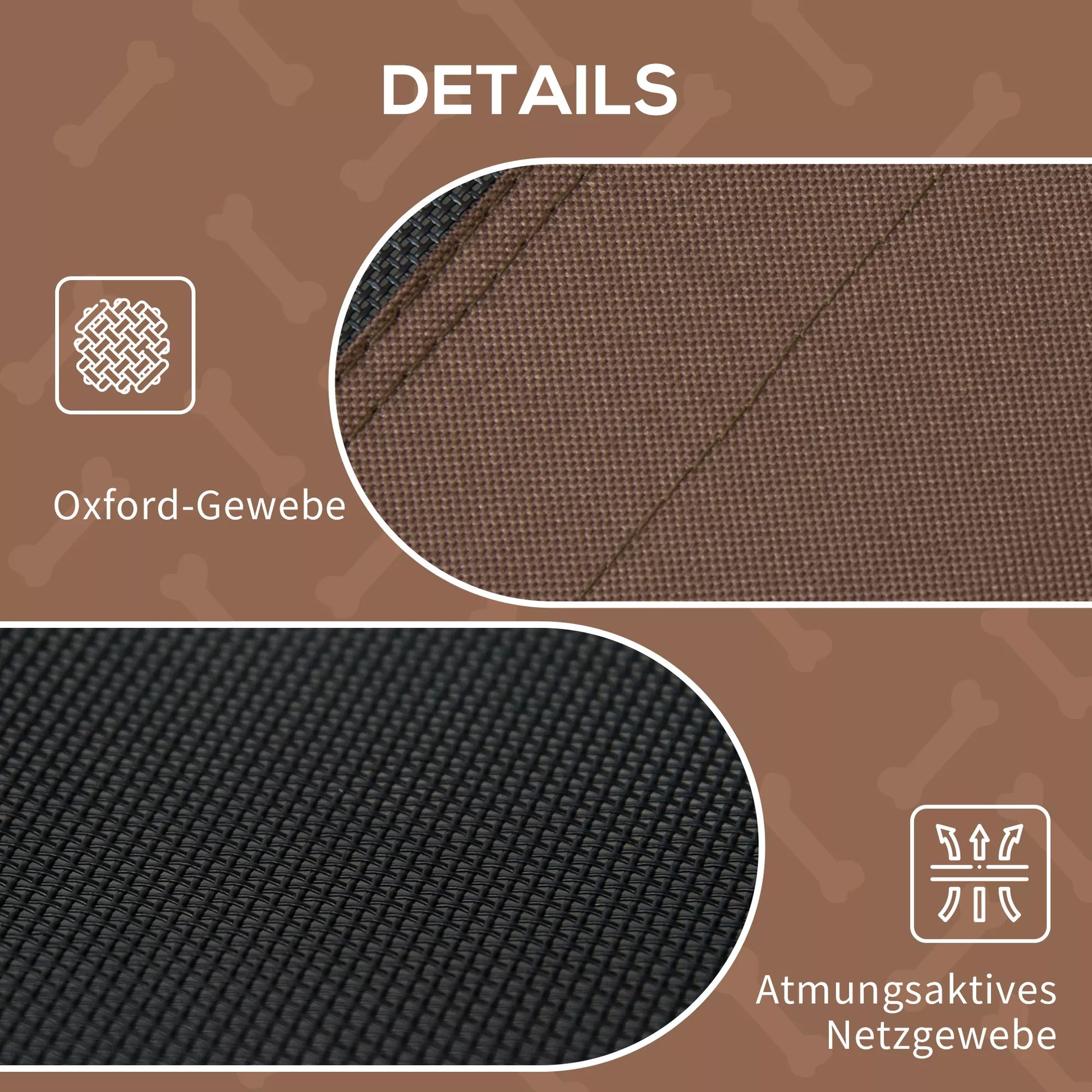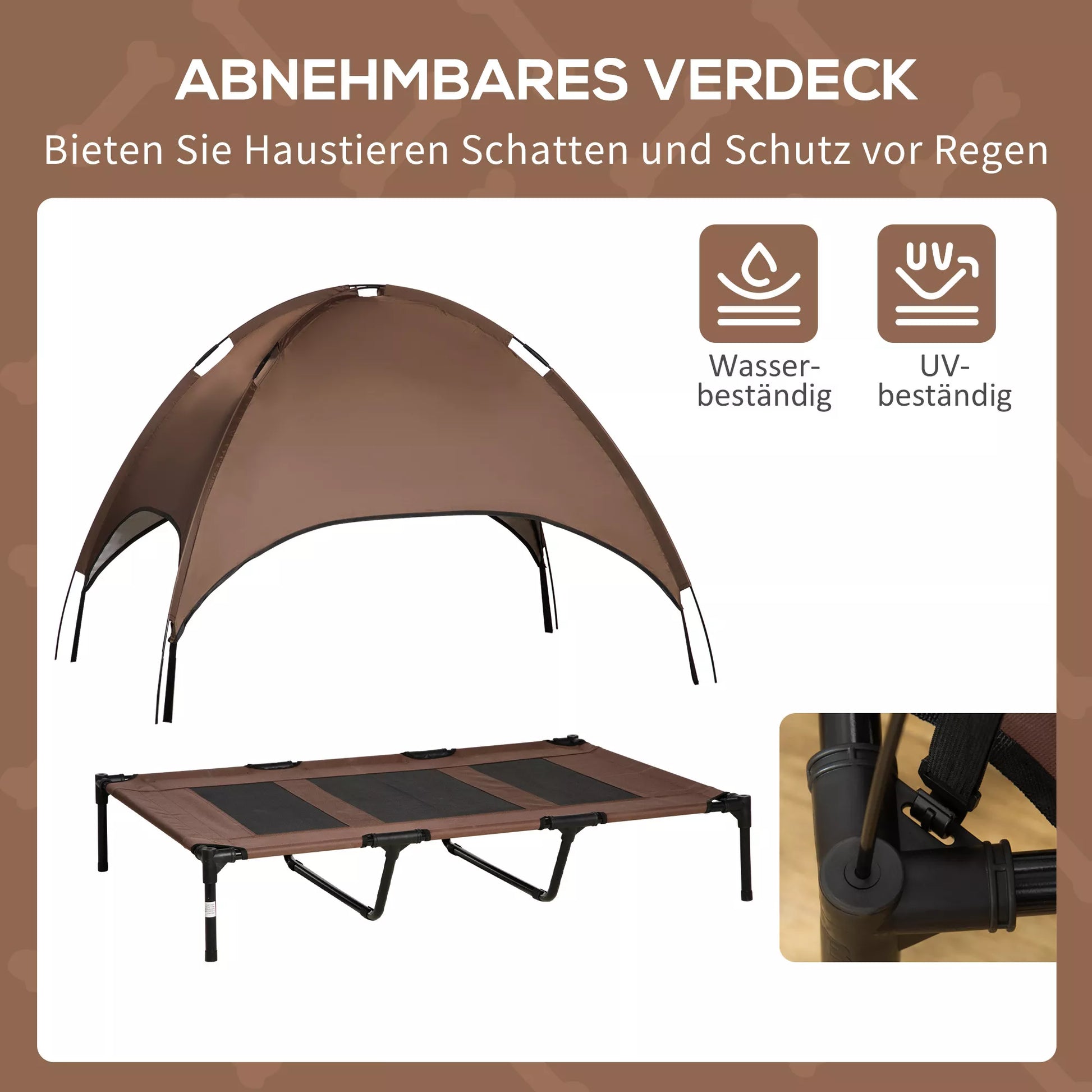 Paaukštinta šunų lova su baldakimu, lova augintiniams, lauko šunų gultas su stogeliu, pralaidi orui, taftos audinys, skirta stovyklavimui, spalva "Kava", 122 x 92 x 108 cm