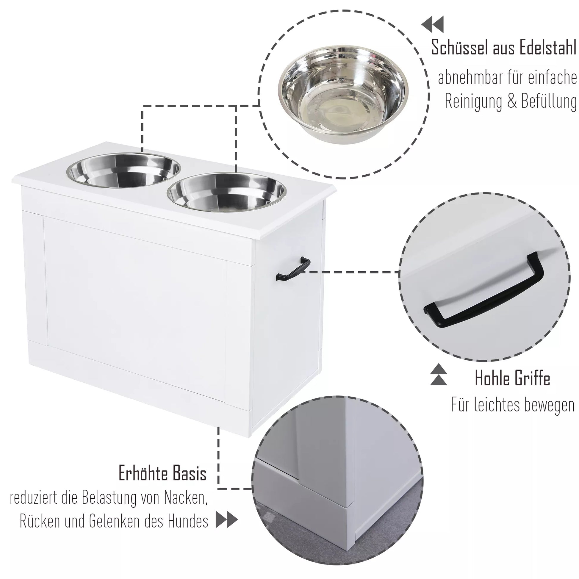 Paaukštintas šunų dubenėlis, maisto dubenėlis su laikymo vieta, vandens dubenėlis, 2 x 2000 ml nerūdijančio plieno dubenėliai, šunų dubenėliai, ėdalo dubenėlis, šėrimo stotelė šunims, katėms, baltas