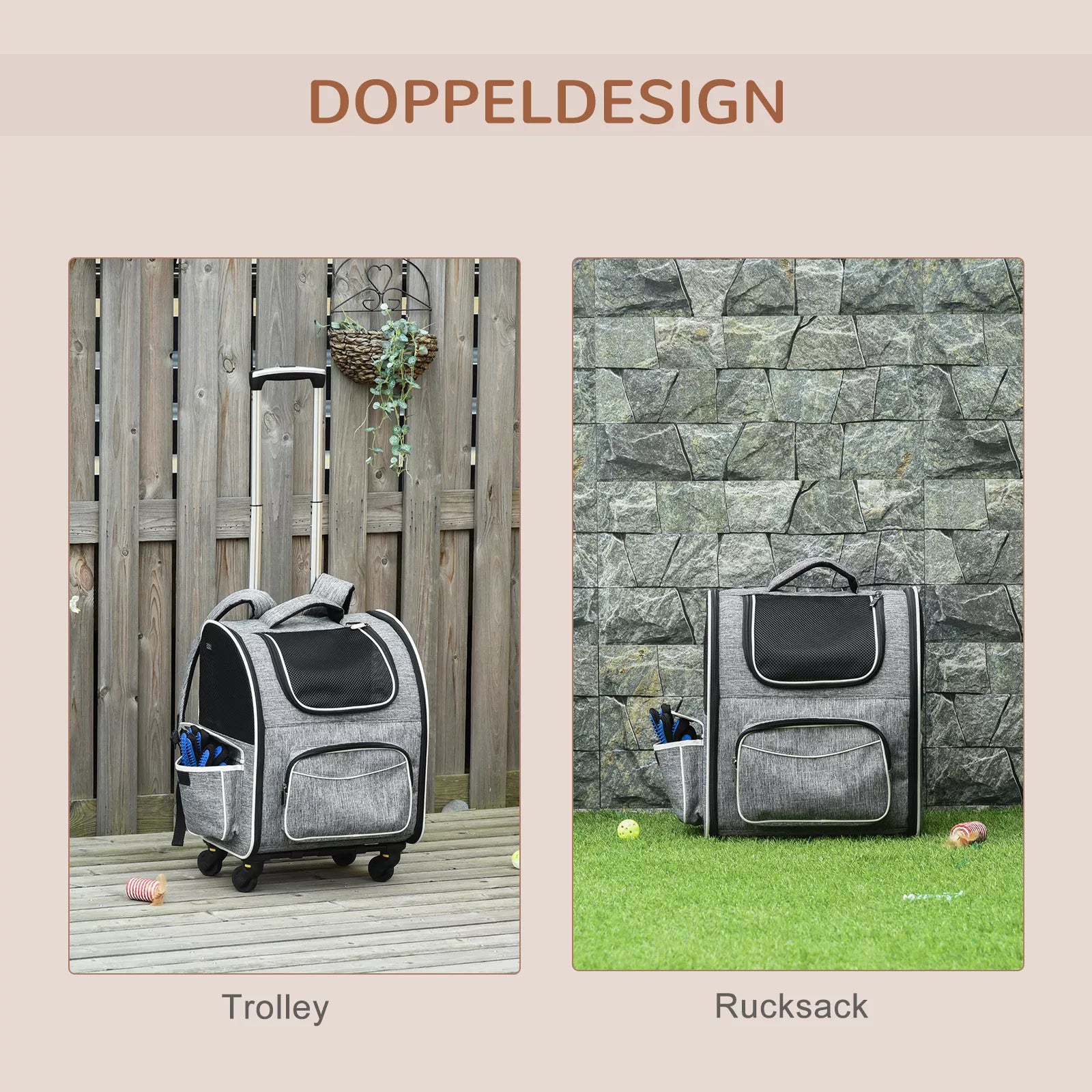 PawHut 2-in-1 Šunų transportavimo krepšys, Oksfordo audinys, Pilka + Balta + Juoda