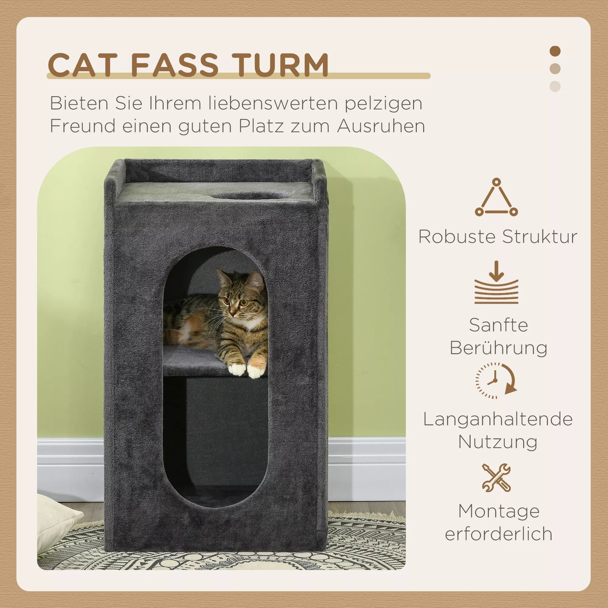PawHut draskomasis bokštelis su 2 kačių guoliais, 1 ilsėsiu, sizaline draskomąja kilimėliu, pliušu, pilka + natūrali