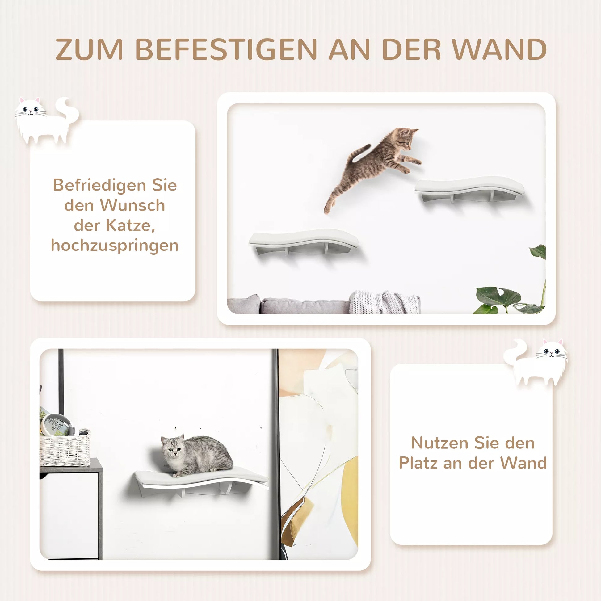 PawHut Katėms skirta kopėčių tipo sienelė, katės guolis, sieniniai katės lentynos, sieniniai katės baldai iki 4,5 kg, balta