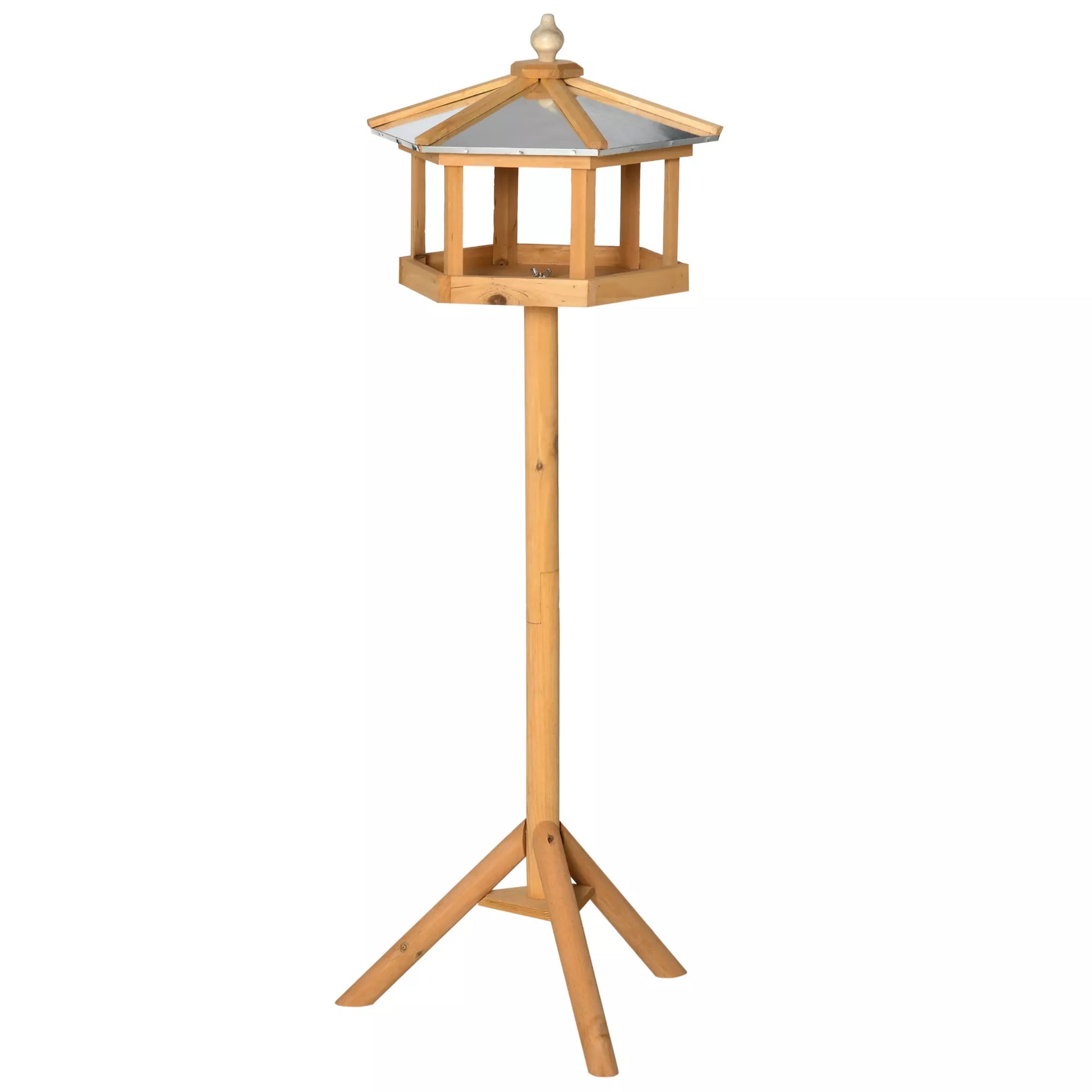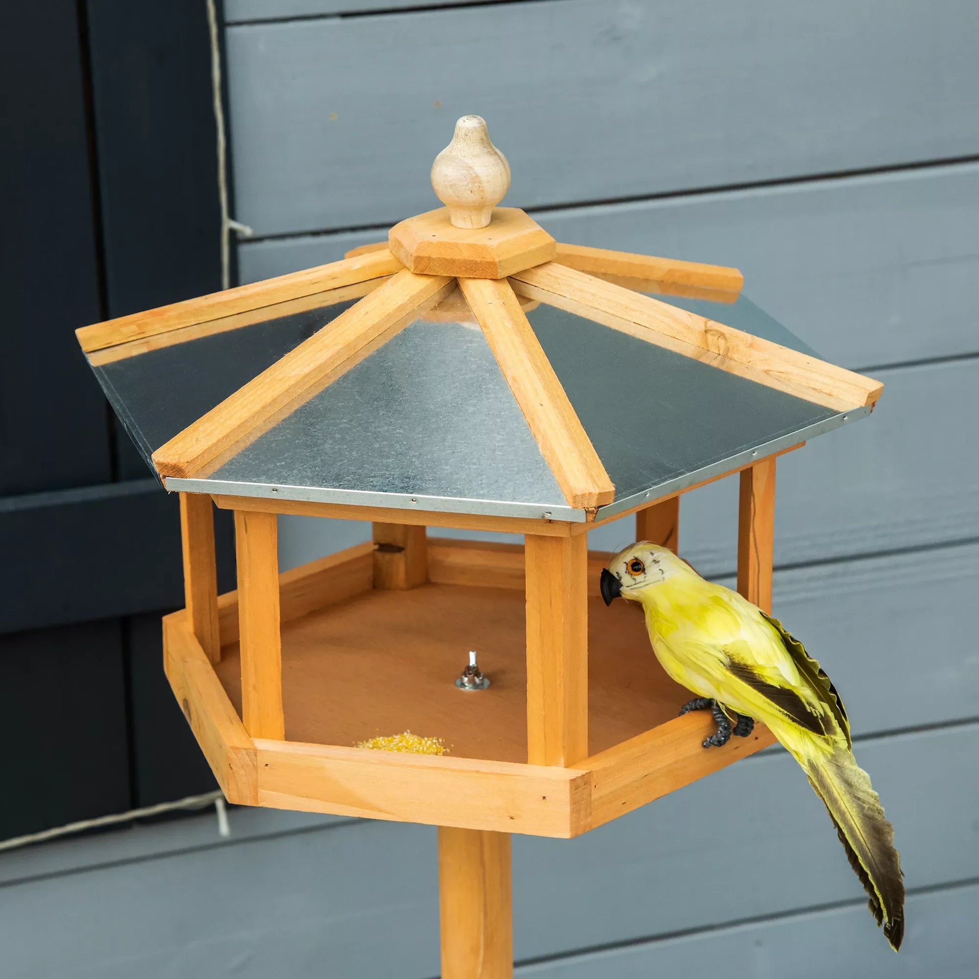 PawHut Paukščių namelis su stovu, atsparus oro sąlygoms, medinė lesykla su atspariu cinko stogeliu laukiniams paukščiams, 40 x 40 x 113 cm, Geltonas PawHut