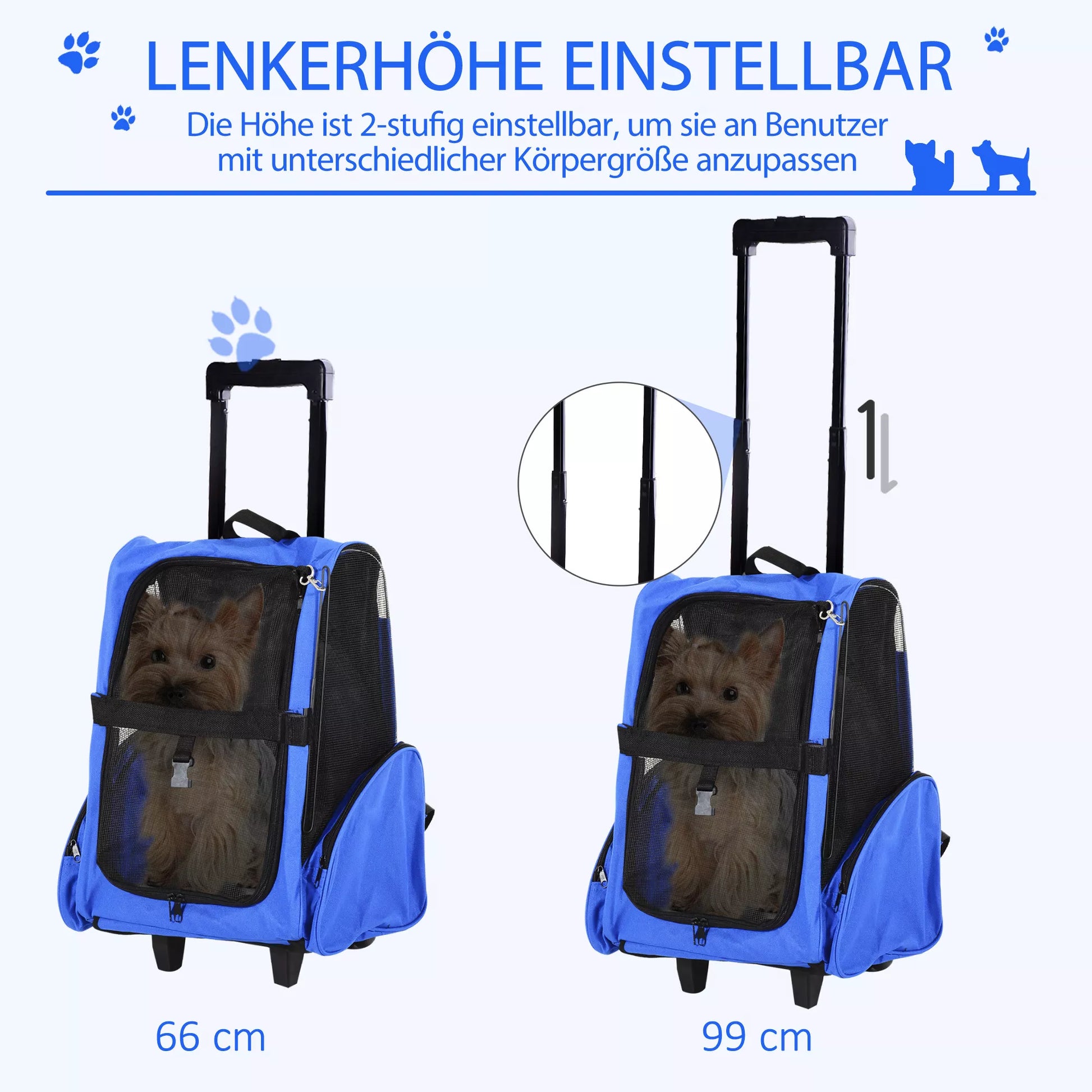 PawHut Šunų transportavimo krepšys, naminių gyvūnėlių kuprinė, 2-in-1 dizainas, ištraukiama rankena, šoninės kišenės, Mėlyna, 42 x 25 x 55 cm