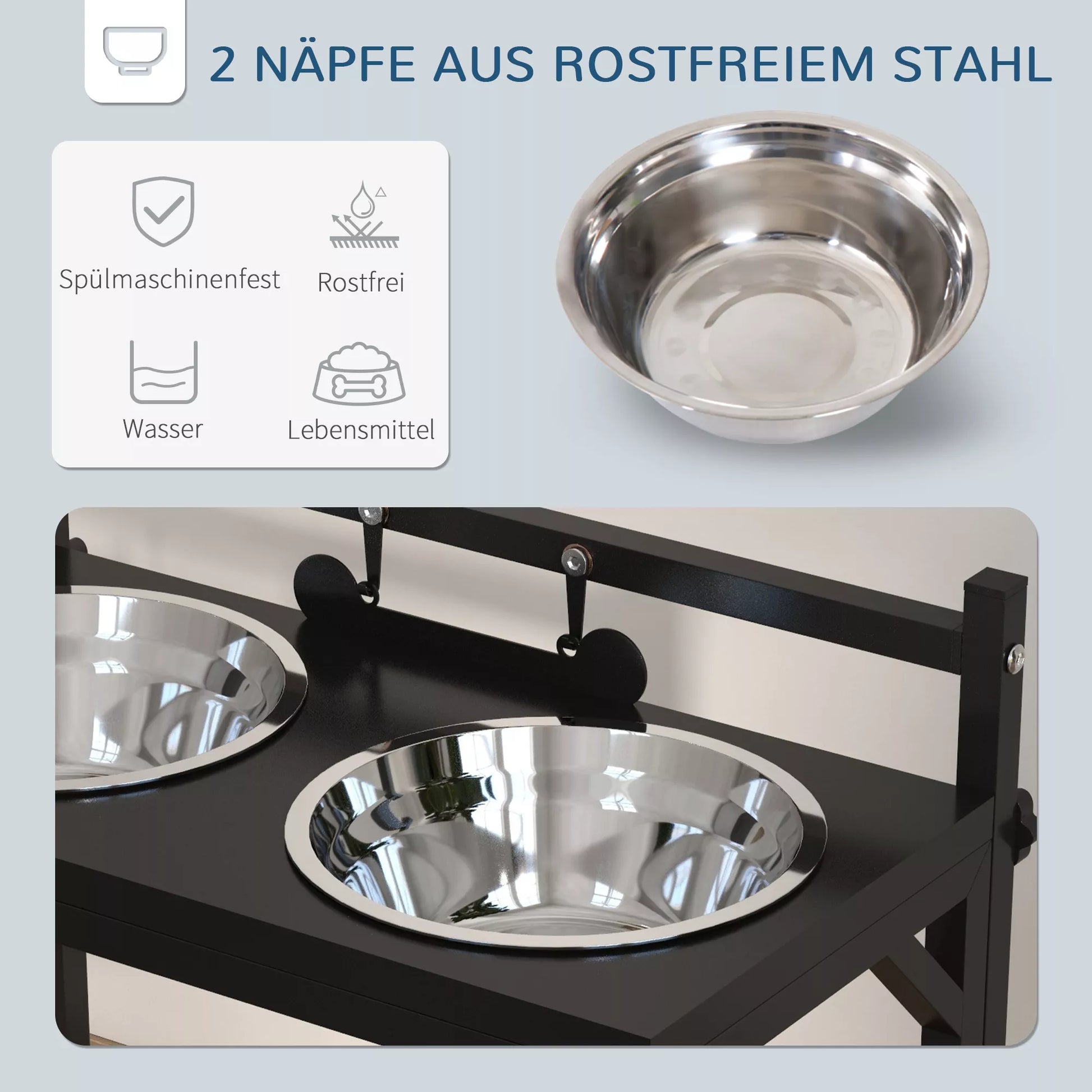 Šėrimo stotelė Paaukštinti maisto indeliai Nerūdijančio plieno dubenėliai, 40,5 x 22 x 39 cm, Juoda + Sidabrinė