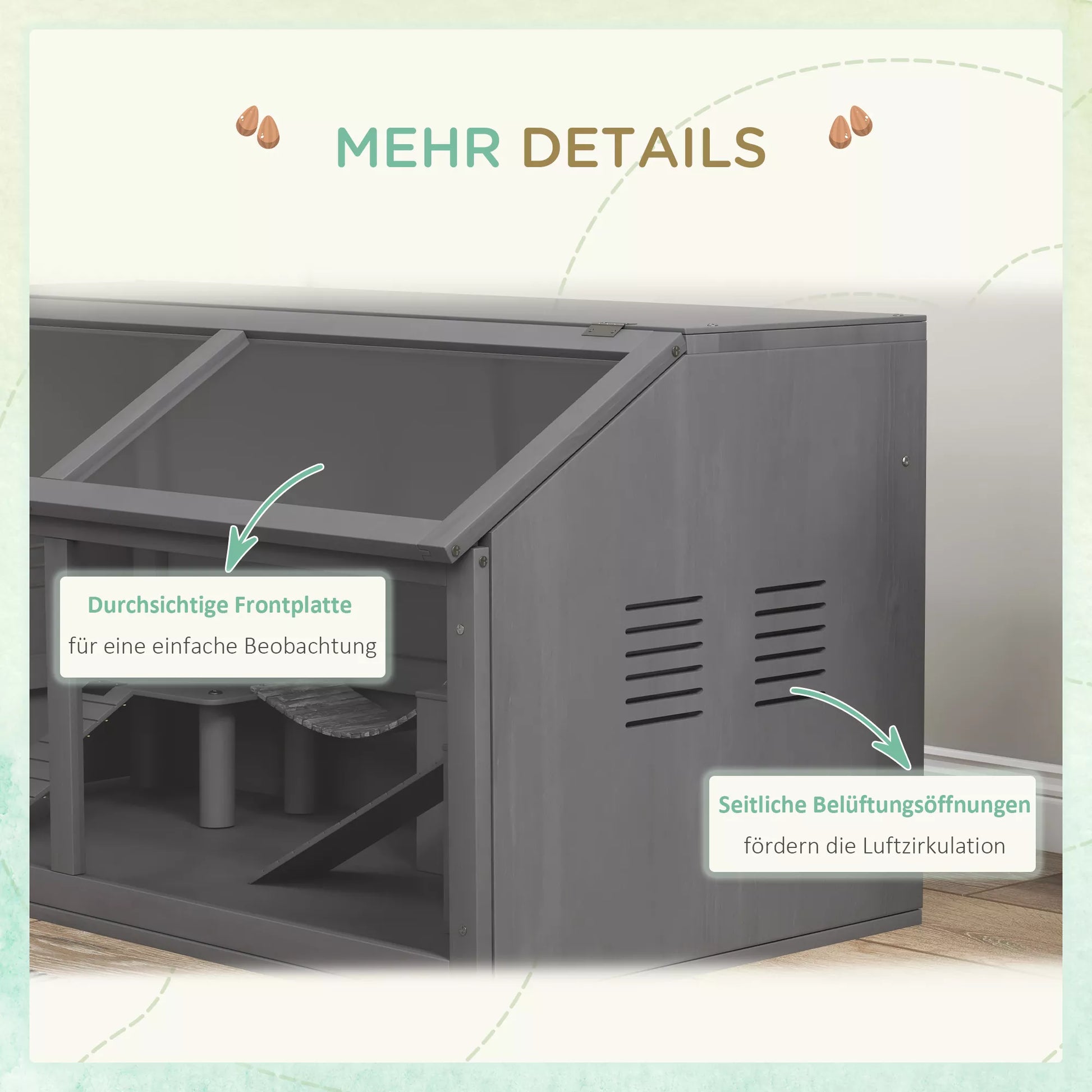 Smulkaus gyvūnėlio ir graužikų narvas su priedais, eglės mediena, 100 cm x 52 cm x 50 cm, pilkas