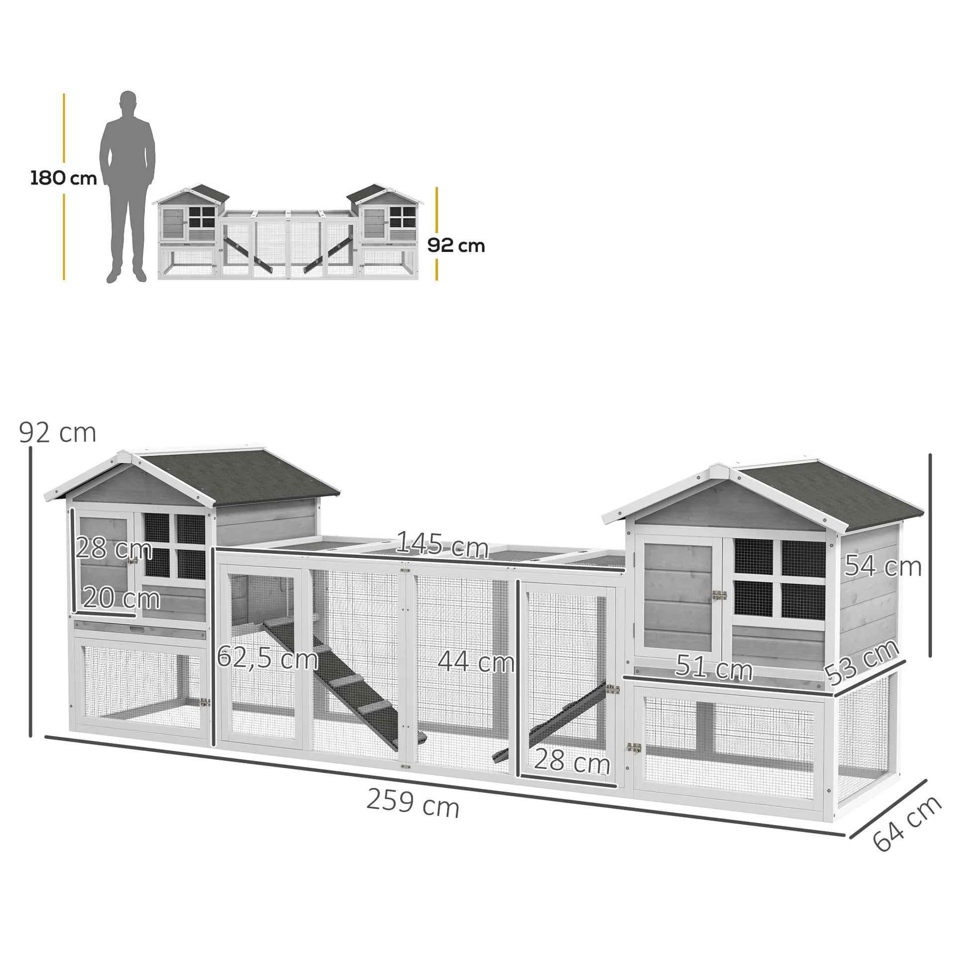 Šis lauko smulkių gyvūnų narvas idealiai tinka triušiams, jūrų kiaulytėms ir kitiems panašaus dydžio gyvūnams. Šis prabangus medinis triušių namelis yra saugumo ir laisvės derinys, suteikiantis visus namų patogumus. Viršutinė dalis skirta privatumui ir ramybei, o apatinė – daugiau erdvės judėjimui ir žaidimams. Užrakinamos durys ir ištraukiami skyriai palengvina valymą ir kitus įprastus darbus.
