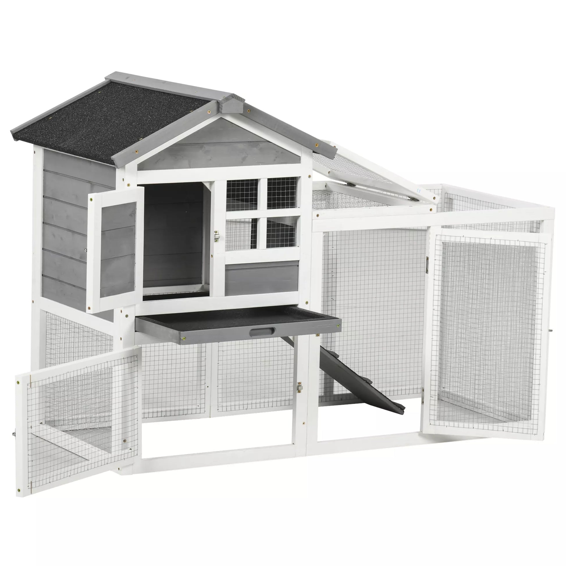 Smulkių gyvūnėlių namelis, triušių namelis, lauko aptvaras, namelis, rampos, ištraukiami padėklai, balta + pilka