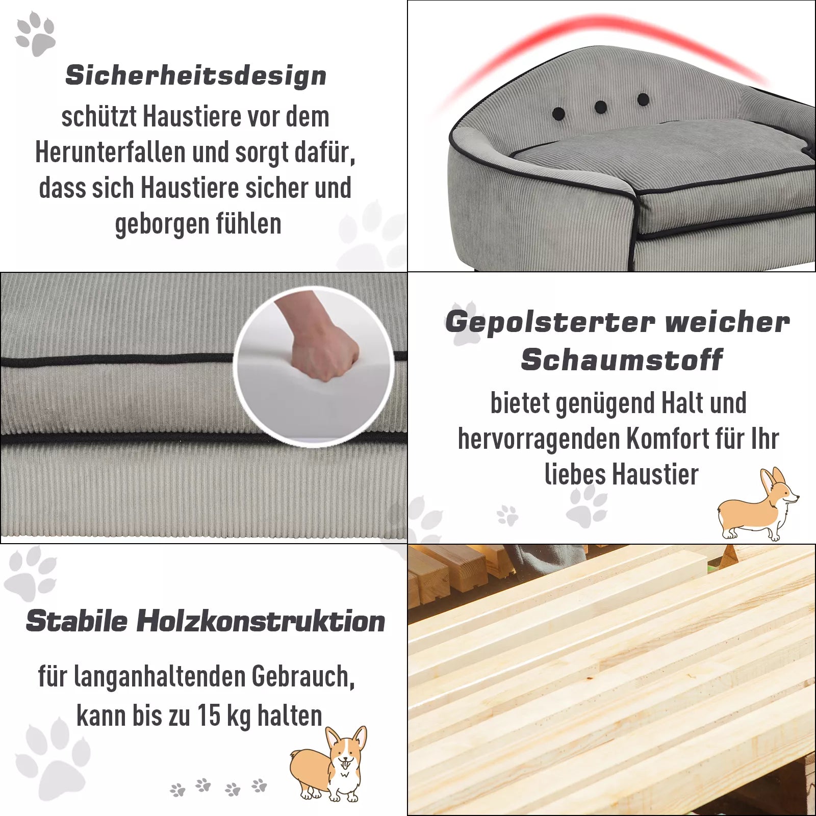 Sofa augintiniams, lova šuniui, kilimėlis šuniui, sofa šuniui, natūralus medžio masyvas + pliušas, pilkas, 66,5 x 45 x 35,5 cm