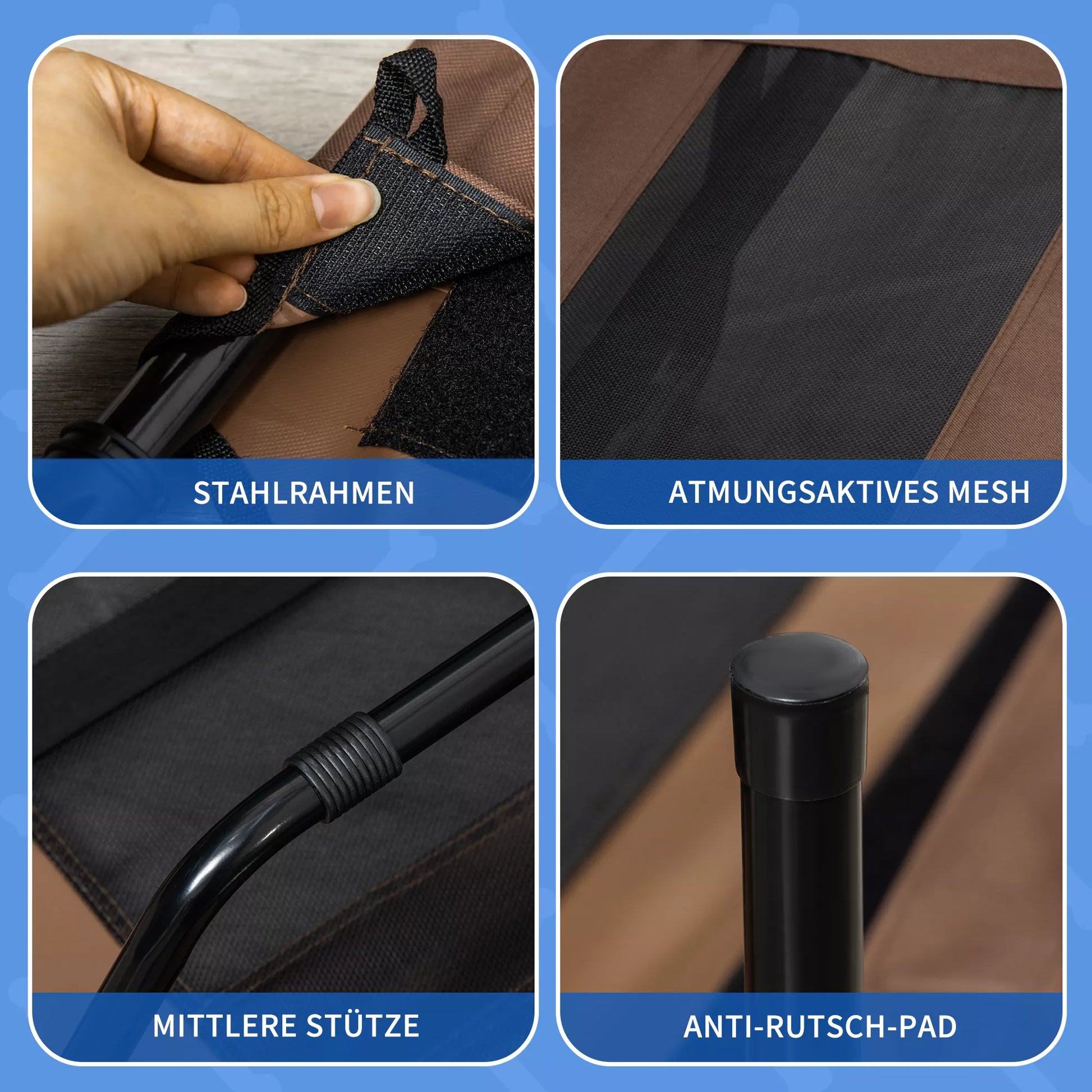 Sulankstama lauko šunų lova su paaukštintu stovu, 122 cm x 92 cm x 23 cm, kavos rudos spalvos + juoda