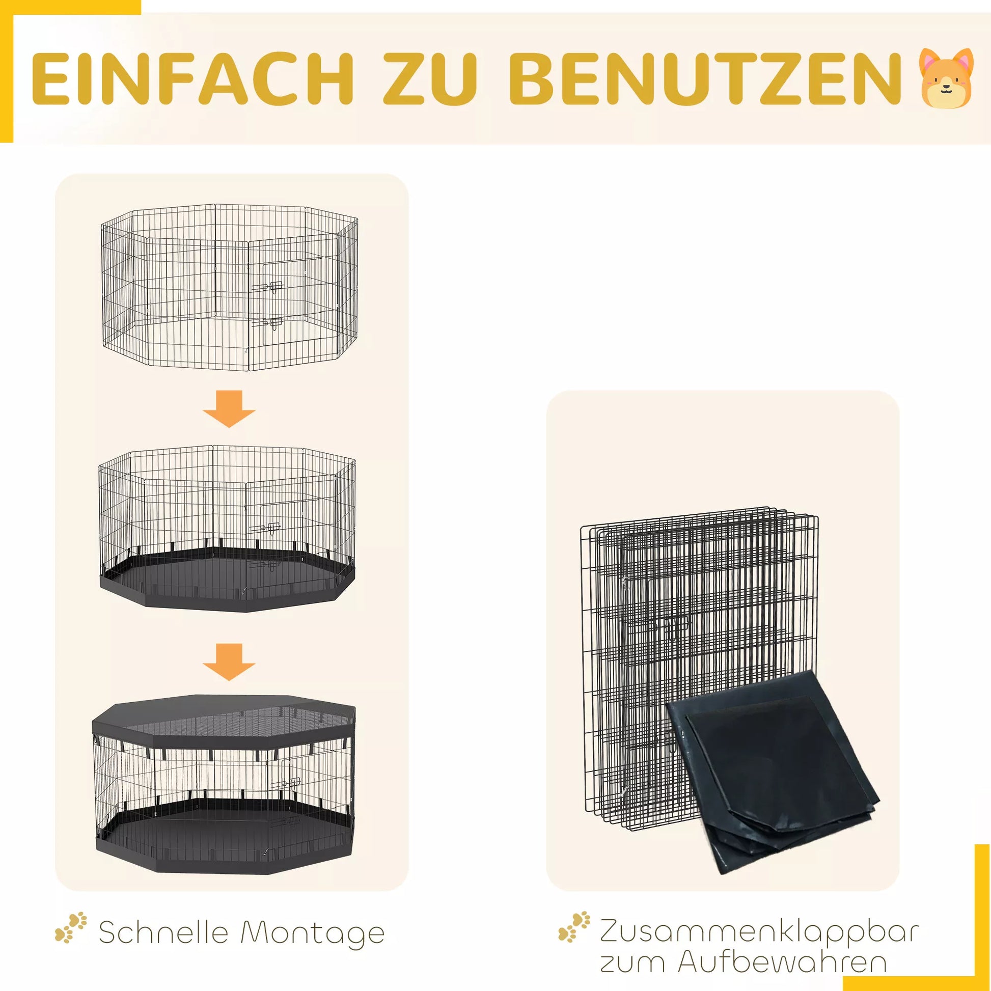 Šuniukų aptvaras, 76 cm aukščio / ~2,5 m², 8 paneliai, grindų danga, kombinuotas stogelis