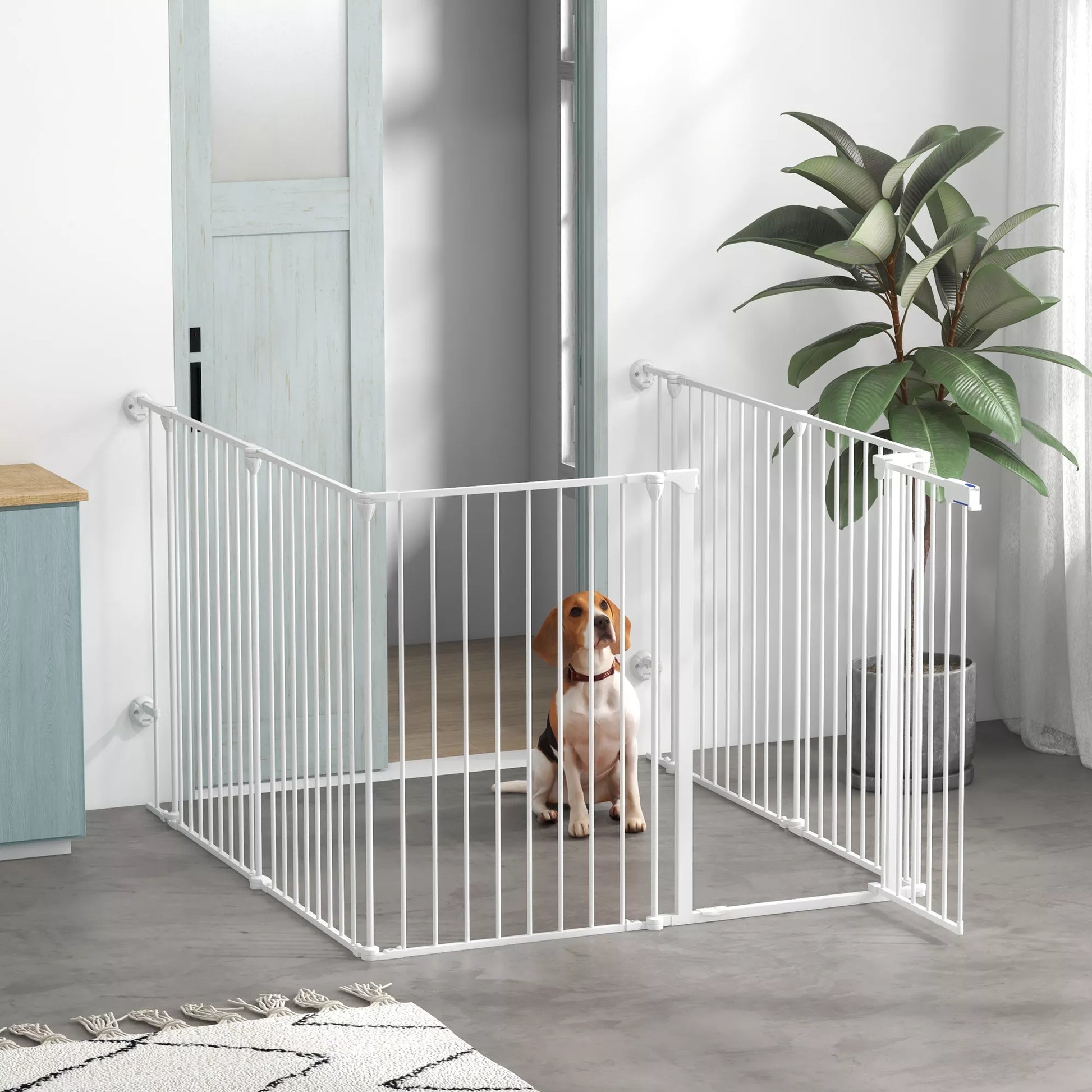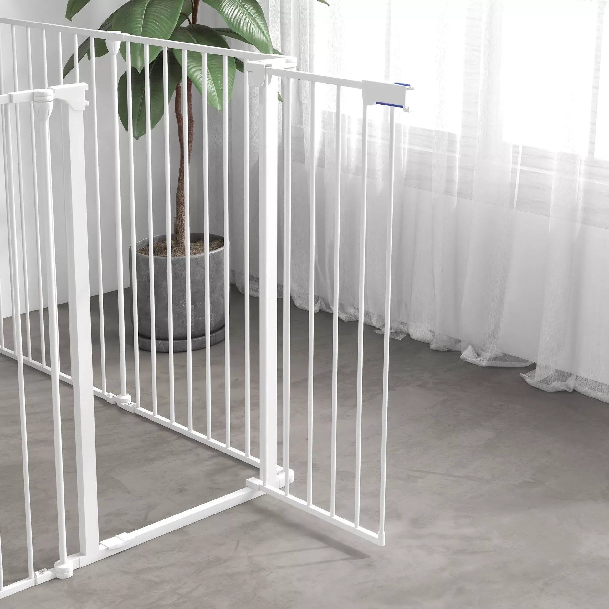 Šuniukų aptvaras, modulinė konstrukcija, sulankstomas, plieninis rėmas, skirtas naudoti patalpose, baltas, 90 x 123 x 102 cm