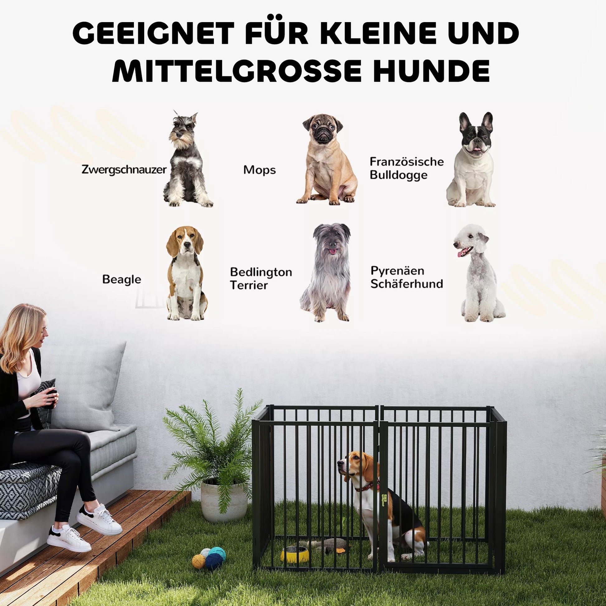 Paverskite bet kurią vietą saugia ir smagia žaidimų aikštele jūsų augintiniams. Nesvarbu, ar naudojamas viduje, lauke, ar kaip tvirtas voljeras mažyliui atskirti teritoriją, šį lankstų aptvarą lengva pritaikyti. Dėl šešių reguliuojamų sienelių ir specialiai sukurtų durų galite optimaliai pritaikyti dizainą ir išdėstymą pagal savo gyvūno poreikius.