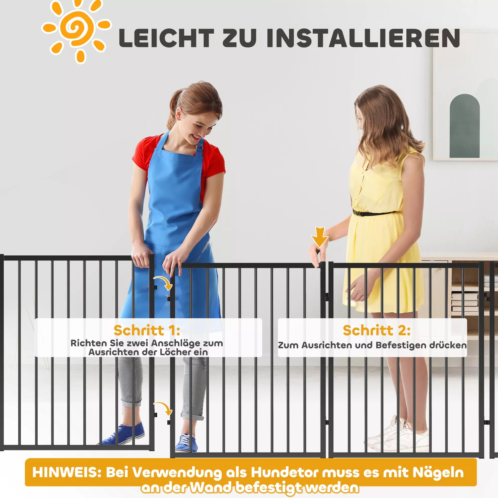 - ✔ PASTABA: Naudojant kaip šunų aptvarą, pritvirtinkite nagais prie sienos