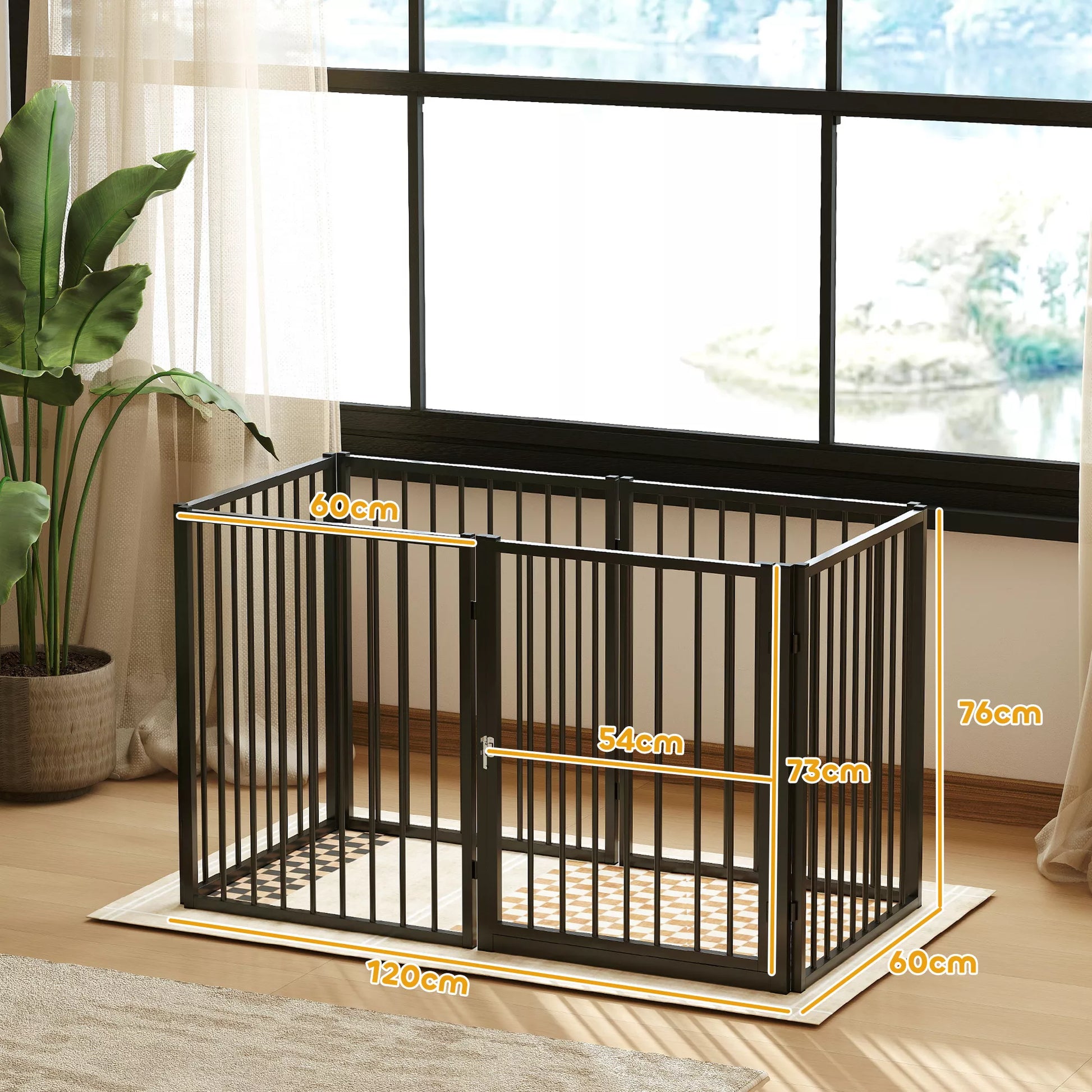 Šuniukų aptvaras, šunų aptvaras, šuniukų voljeras, 6 skydeliai su durelėmis, sulankstoma ir nešiojama šunų tvora, plienas, juoda