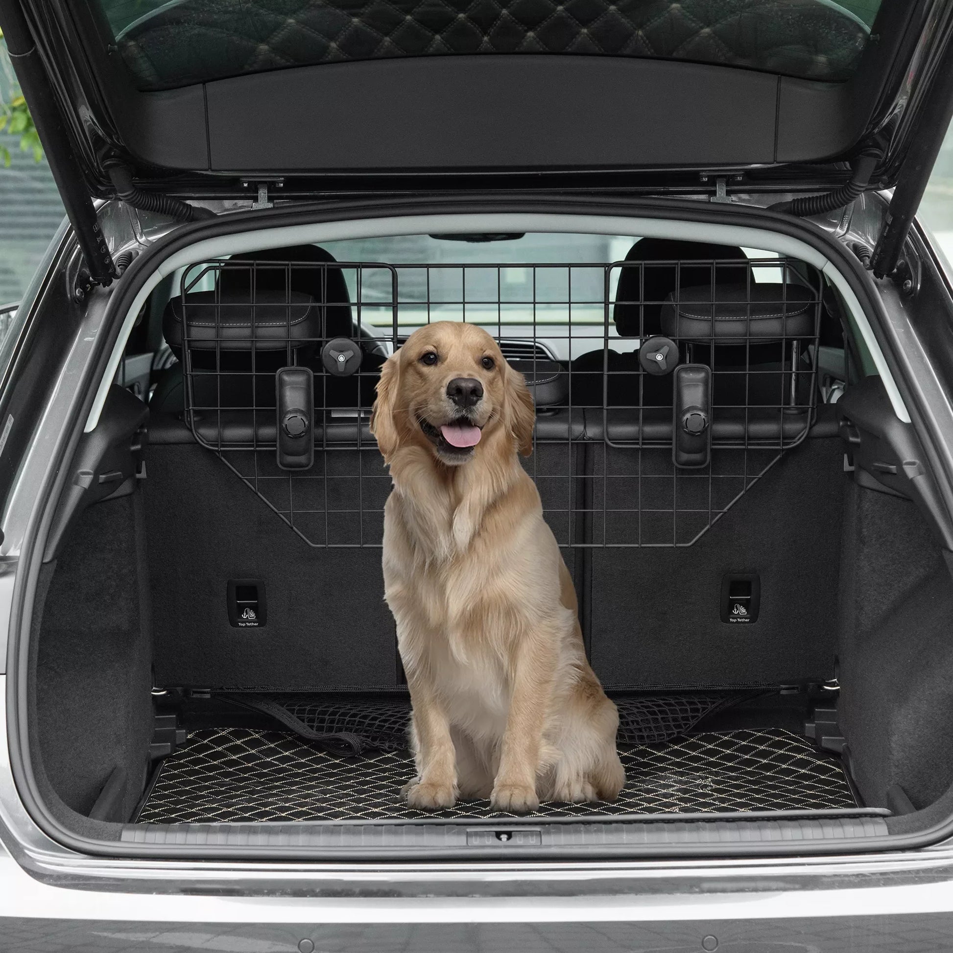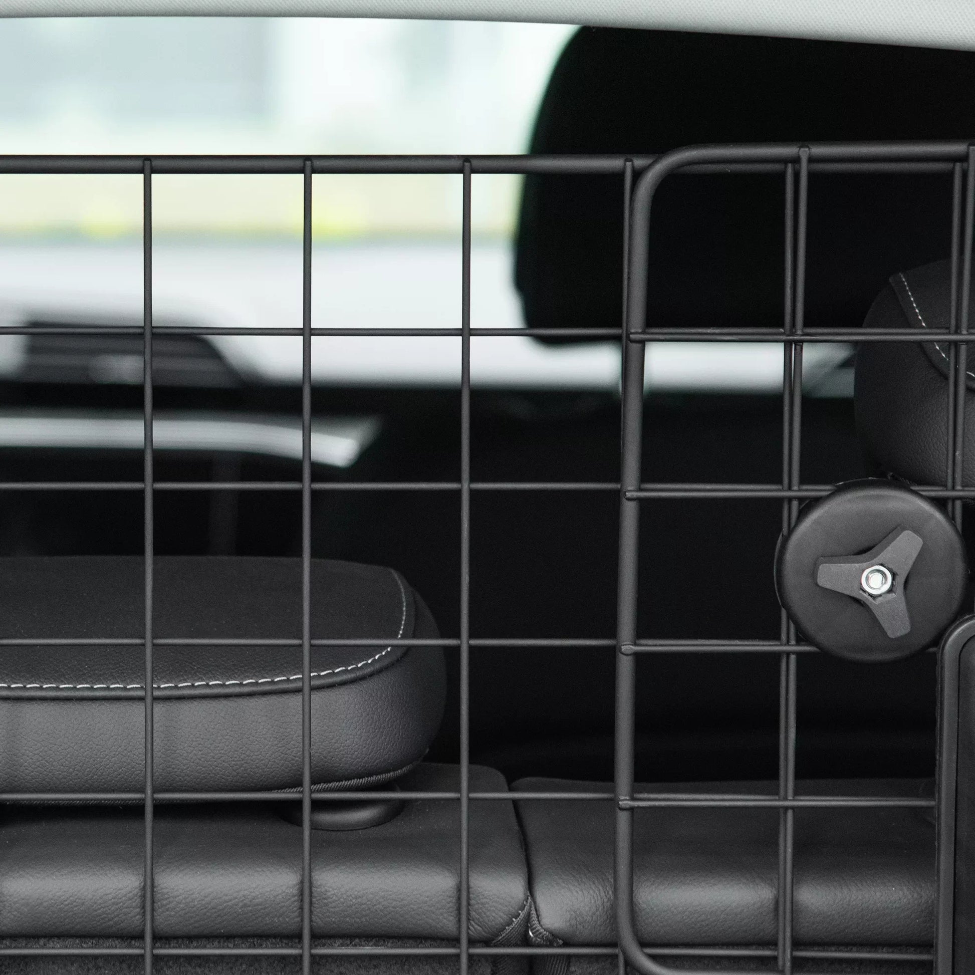 Naudodami šią tvirtą atskiriamąją grotelę, galite saugiai vežti savo augintinį automobiliu. Kad galėtumėte naudoti groteles nepriklausomai nuo savo automobilio dydžio, mes sukūrėme šias reguliuojamo dydžio groteles. Plotis reguliuojamas be pakopų, todėl groteles galima pritaikyti prie konkretaus automobilio. Dabar galite saugiai vežti savo augintinį ar bagažą bagažinėje.