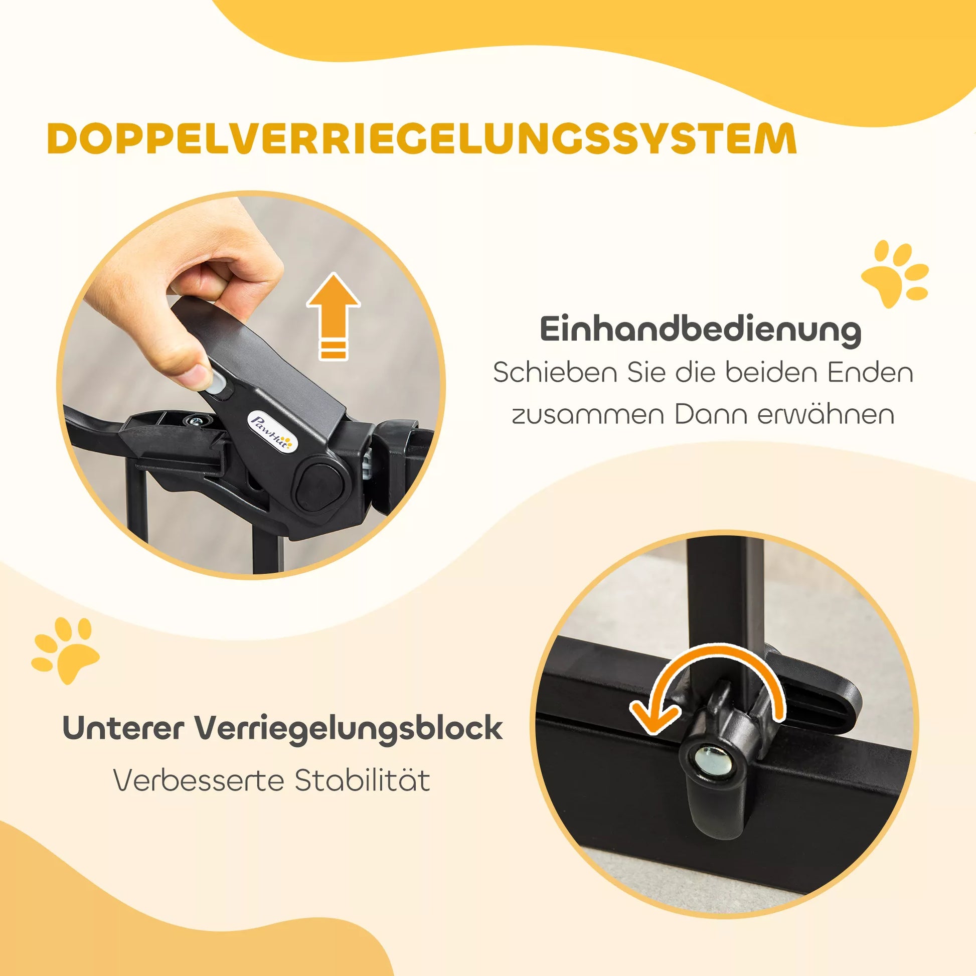 Šunų apsauginiai varteliai, dvigubas užraktas, savaime užsidarančios durys, 104 cm aukščio, plieniniai, juodi
