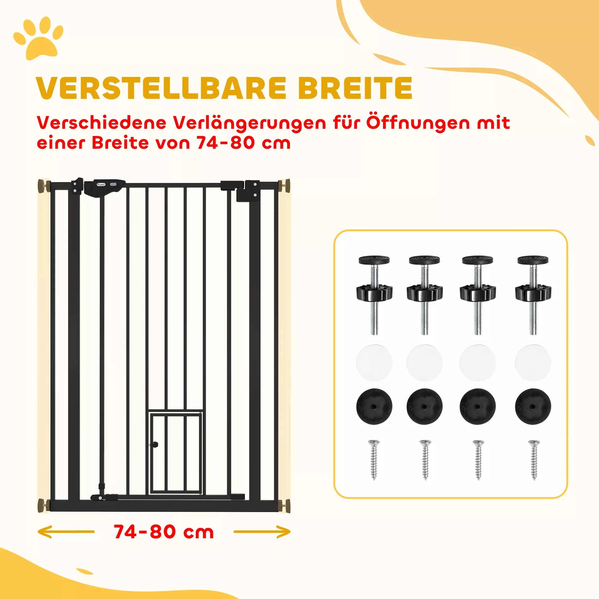 Be vargo laikykite savo augintinius atokiau nuo tam tikrų zonų su šiais šunų varteliais. Pagaminti iš tvirto plieno, jie užtikrina aukščiausią stabilumą ir ilgaamžiškumą. Dėl 4 reguliuojamų varžtų jie lanksčiai prisitaiko prie pločio nuo 74 cm iki 80 cm, todėl puikiai tinka įvairiems kambarių dydžiams. Užtikrinkite saugumą ir tvarką savo namuose – paprastai ir efektyviai.