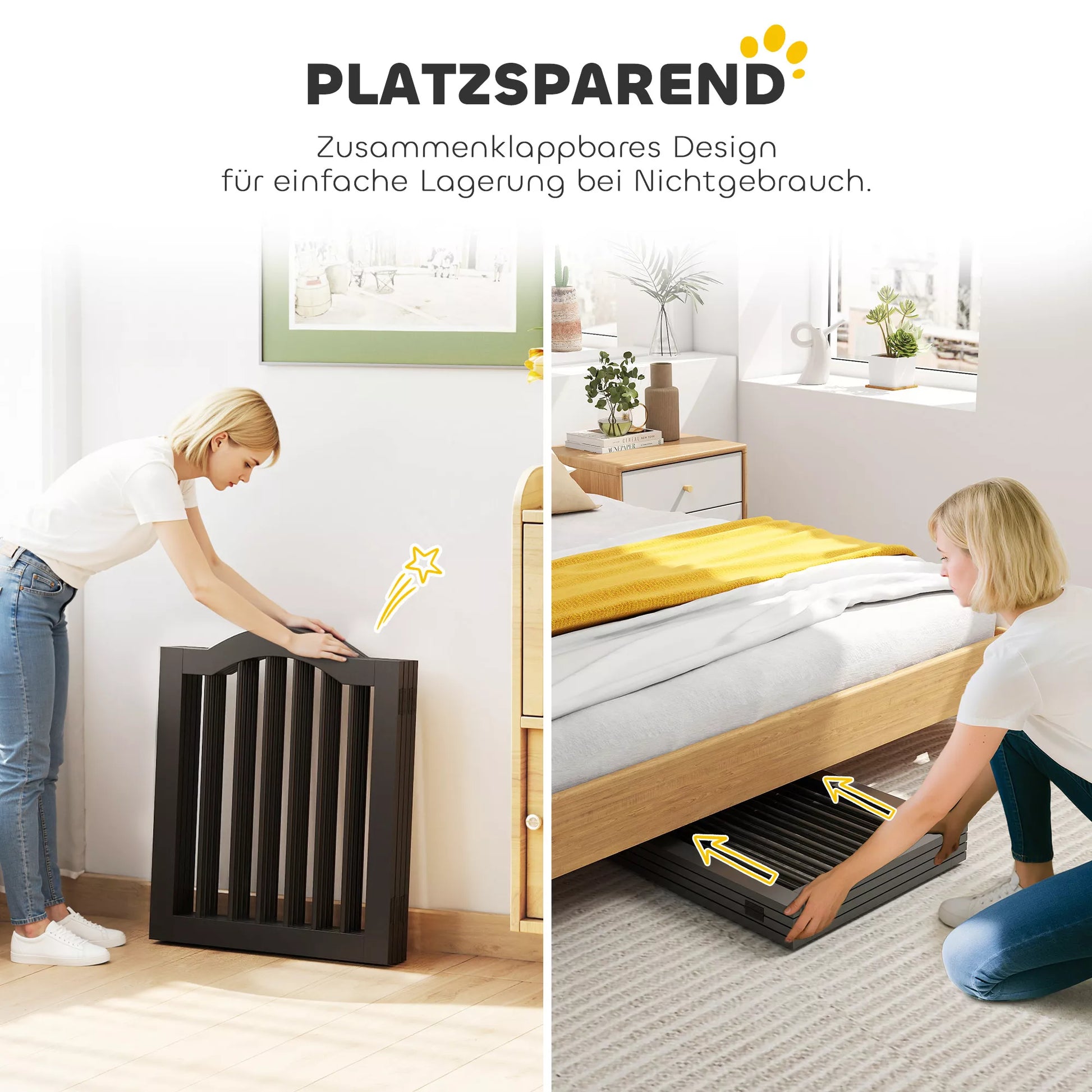 Šunų aptvaro varteliai Laisvai pastatomi apsauginiai varteliai su kojelėmis, Sulankstomi šunų varteliai, 4 panelės, 208 x 29,5 x 61 cm, Juodi