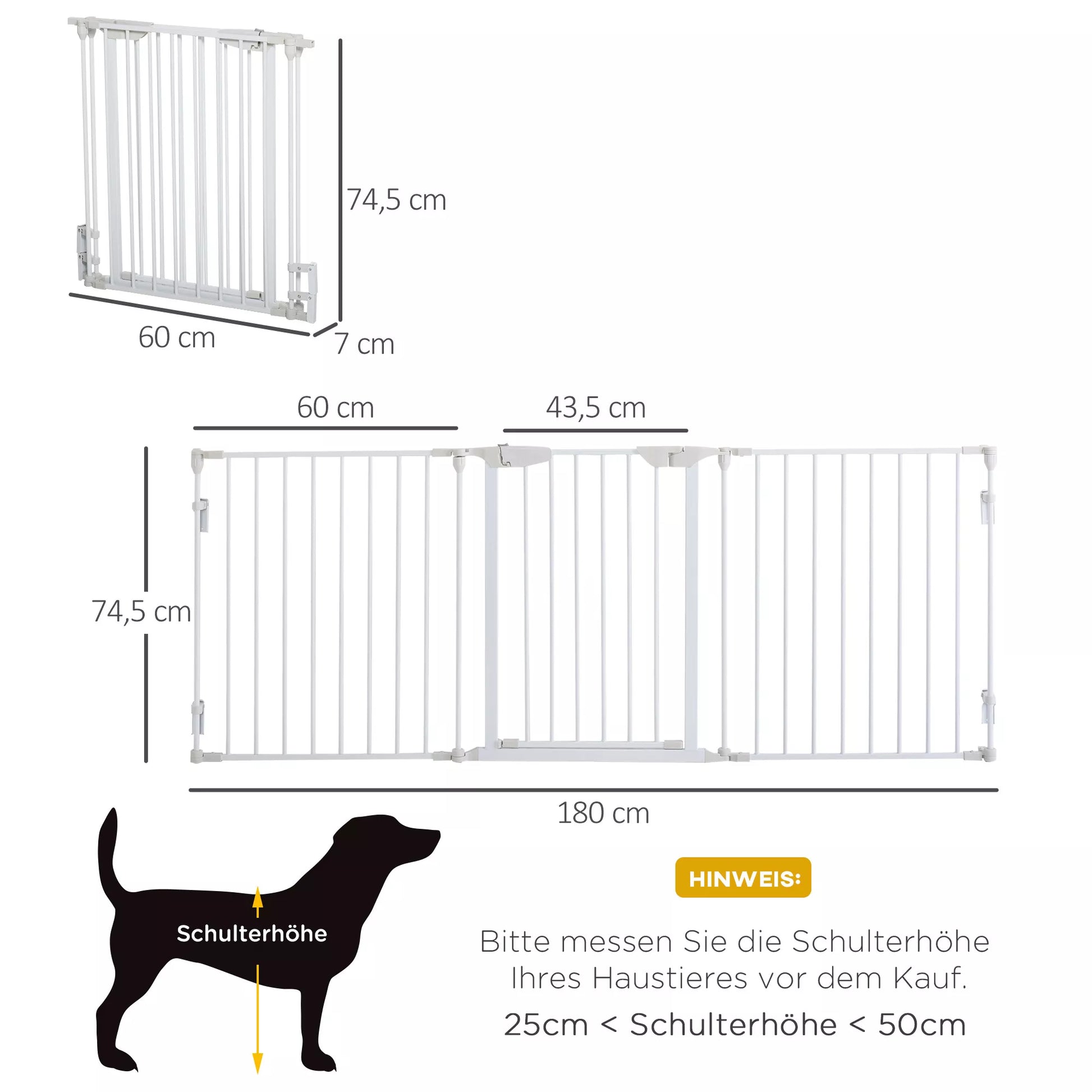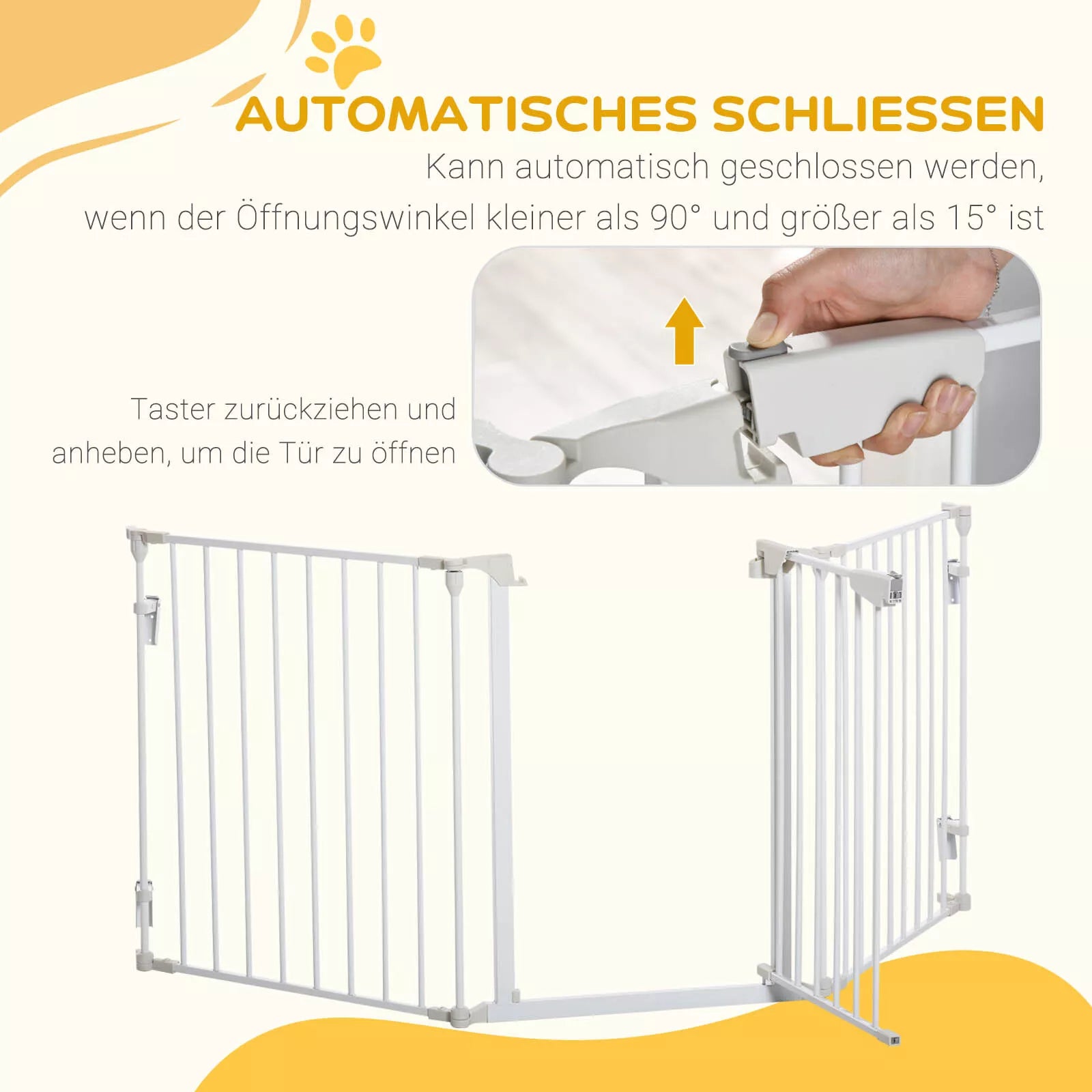 Šunų barjeras, laisvai pastatomas apsauginis gardelis 180 x 74,5 cm, sulankstomas šunų gardelis, durų apsauginis barjeras, laiptų gardelis, šunų atskyrimo gardelis laiptams, durims, virtuvei, koridoriui, 3 paneliai, baltas