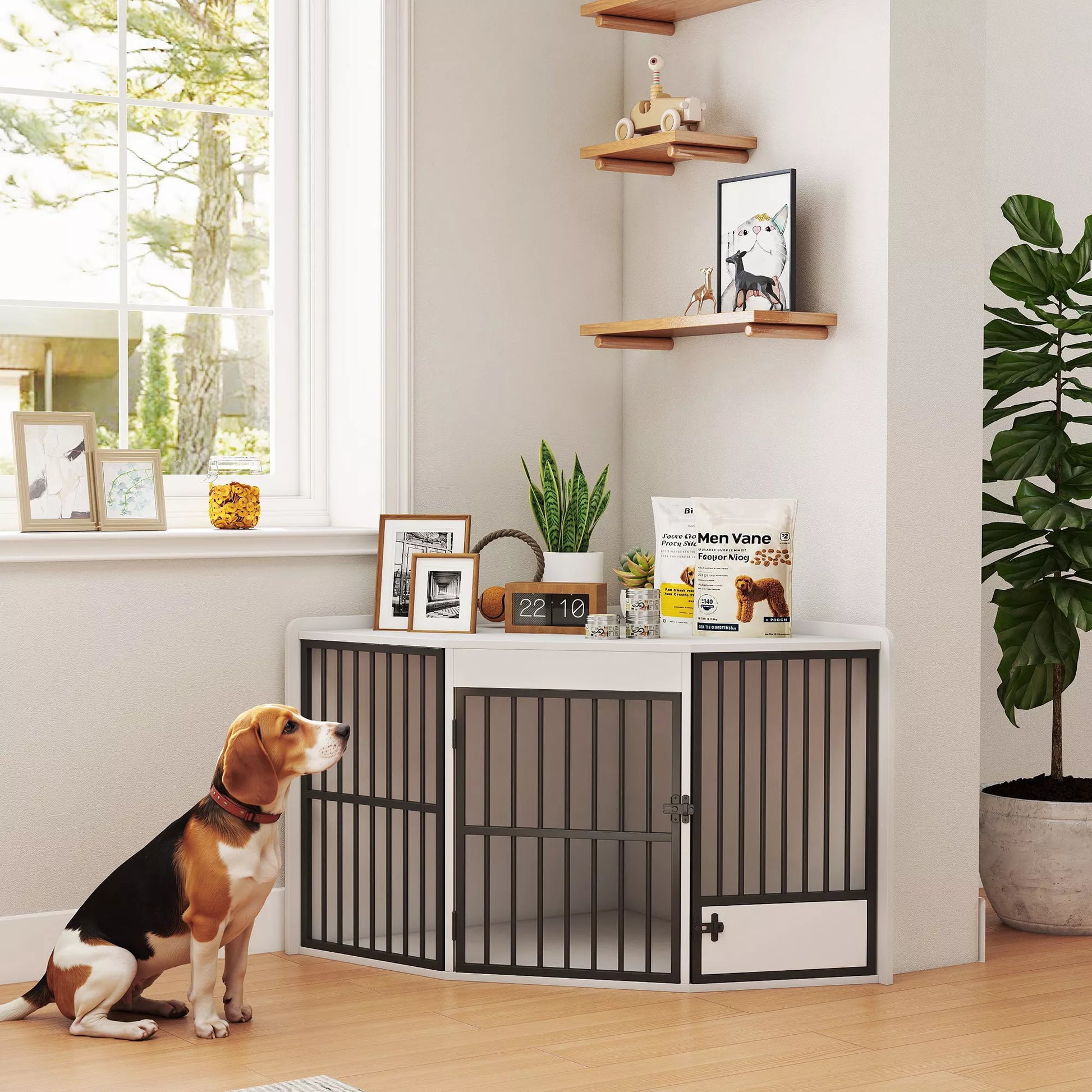 • ✔ Kampinis šunų būdos dizainas optimaliai išnaudoja kampą, tinka mažoms erdvėms