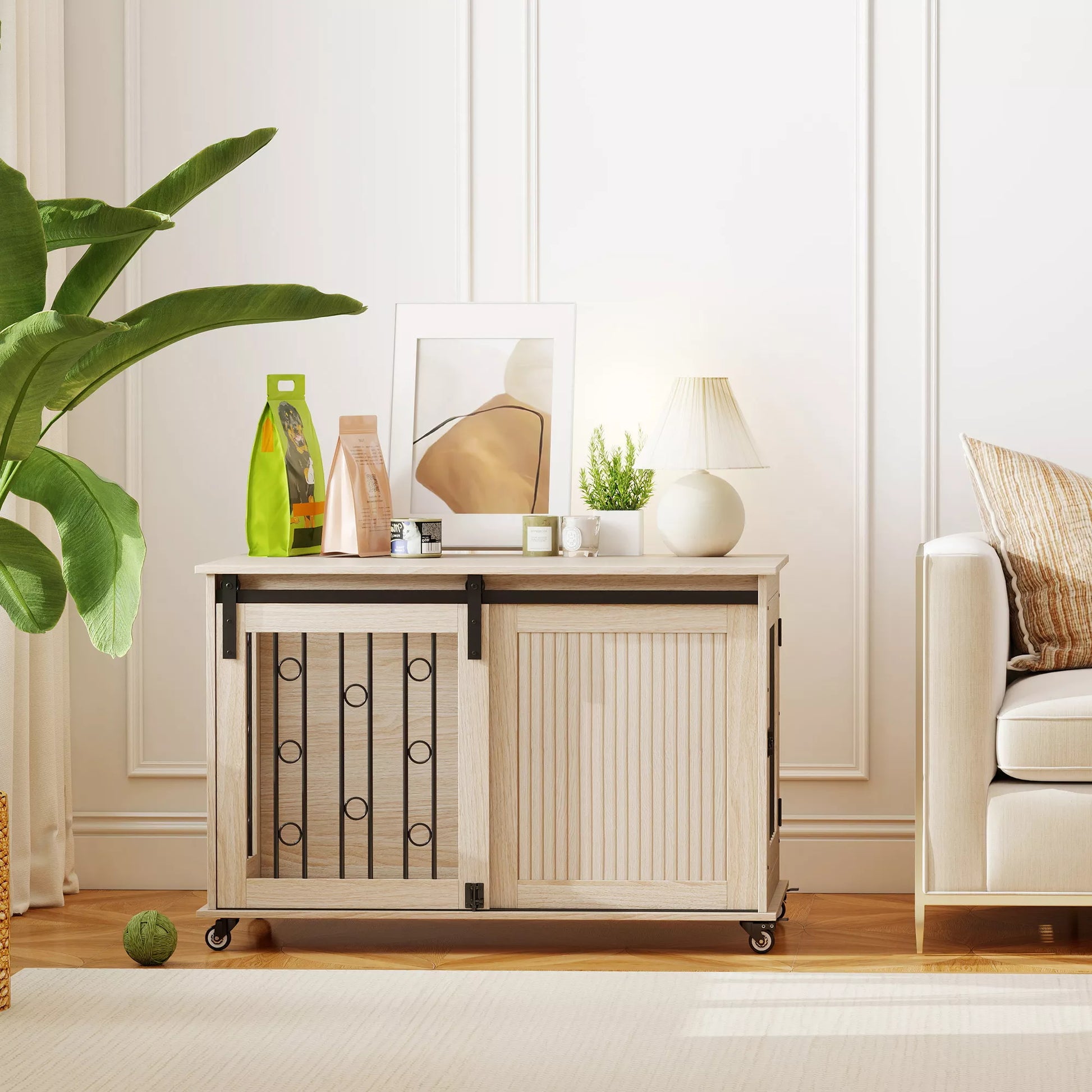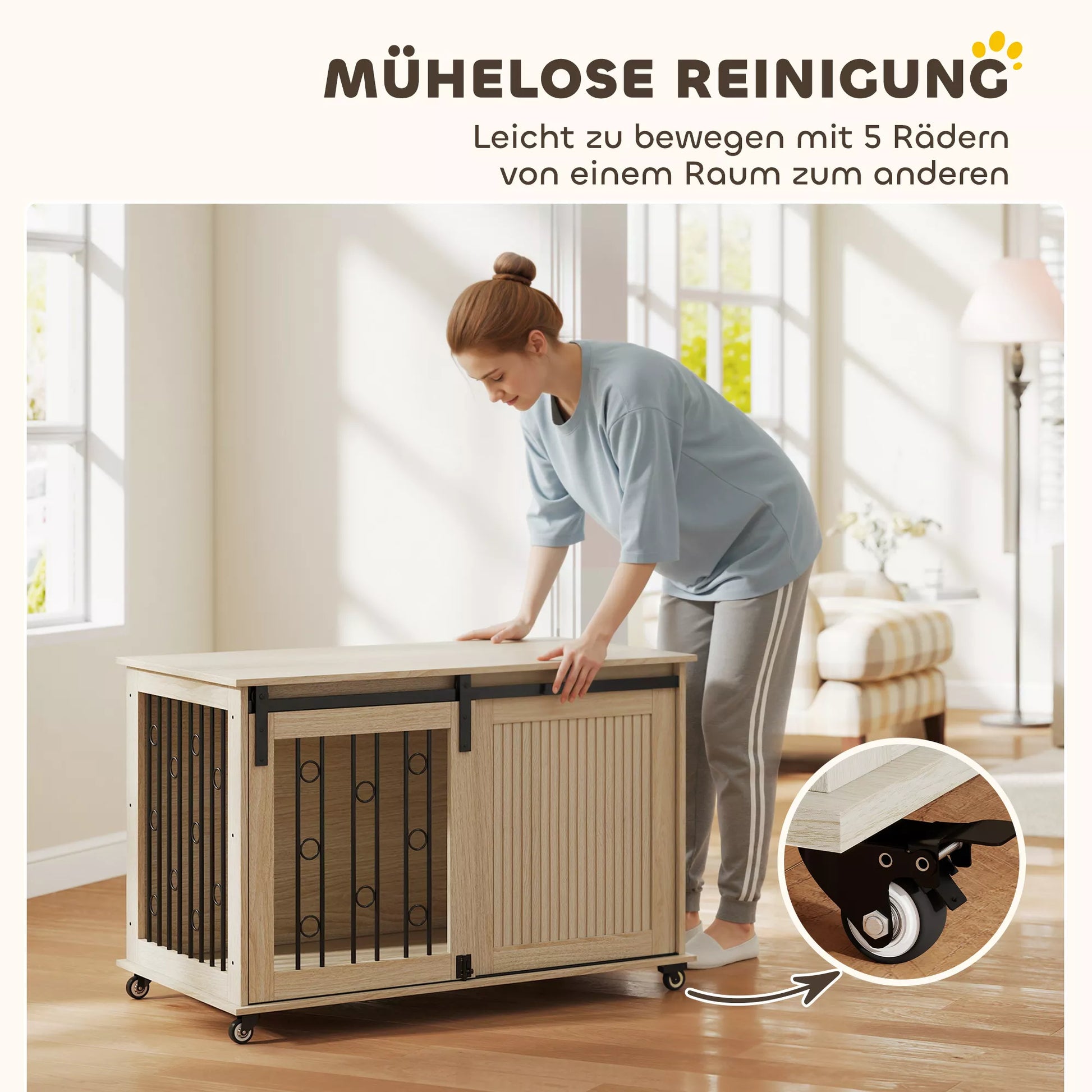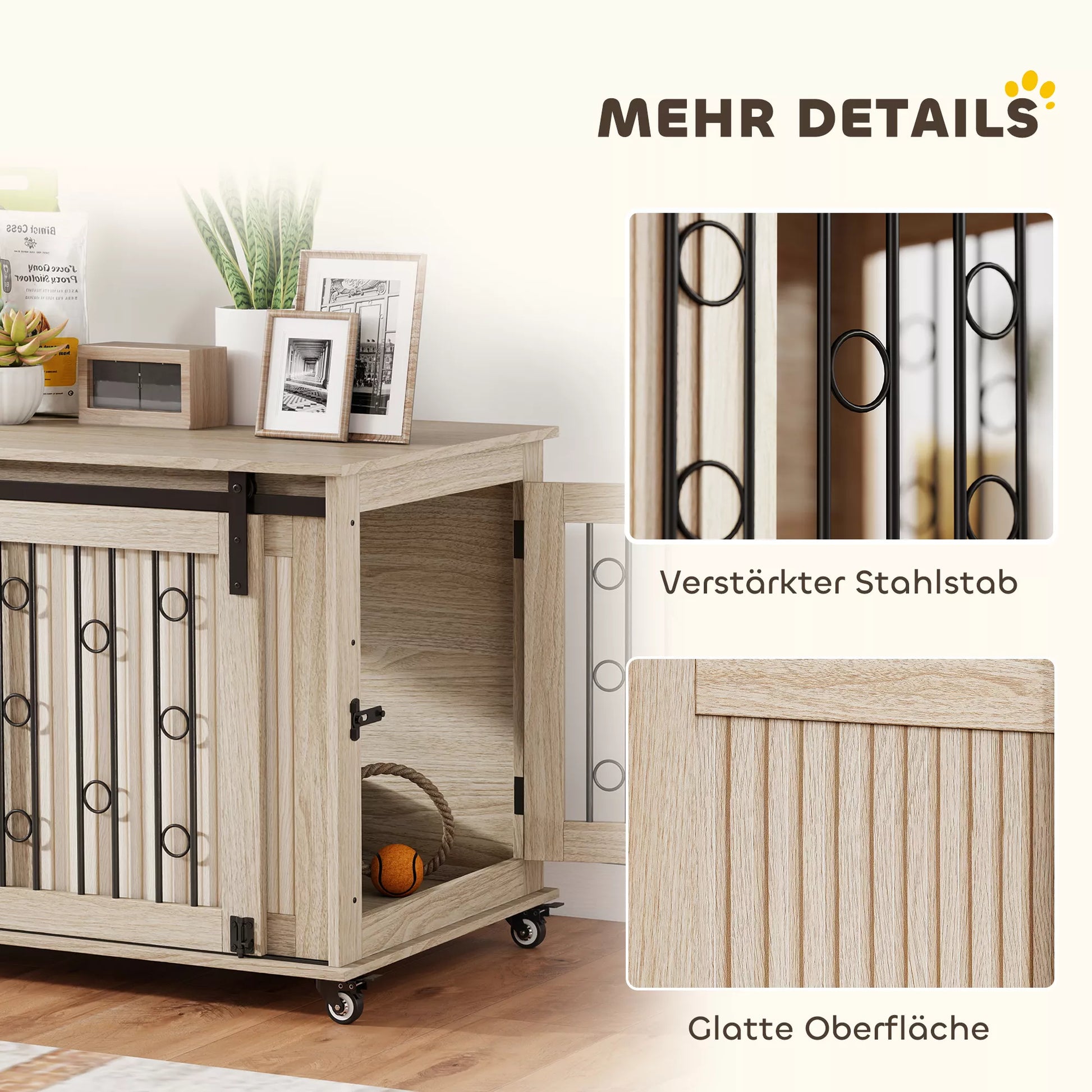 Šunų dėžė su ratukais, stumdomos durys, 100 x 56 x 65 cm, mediena, plienas