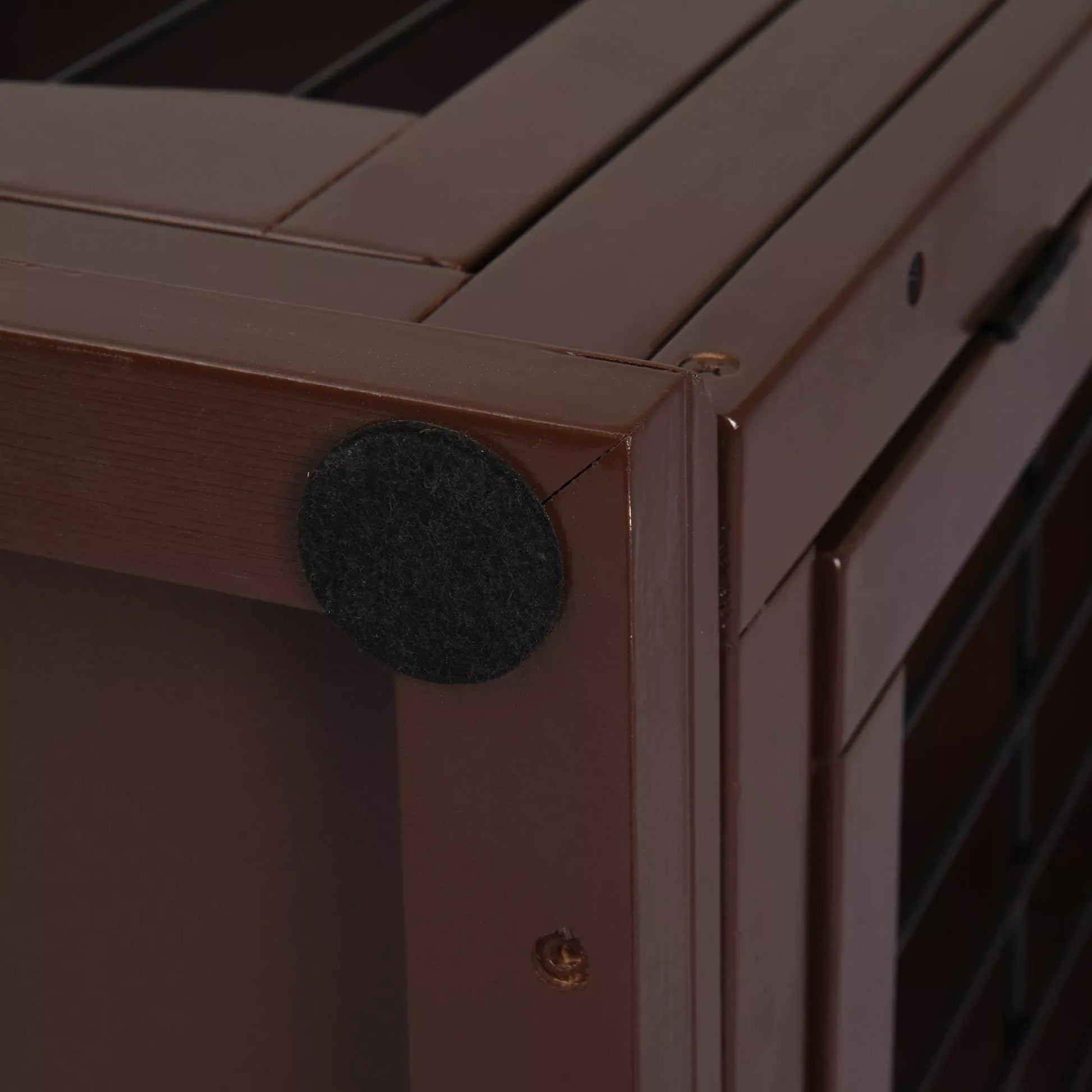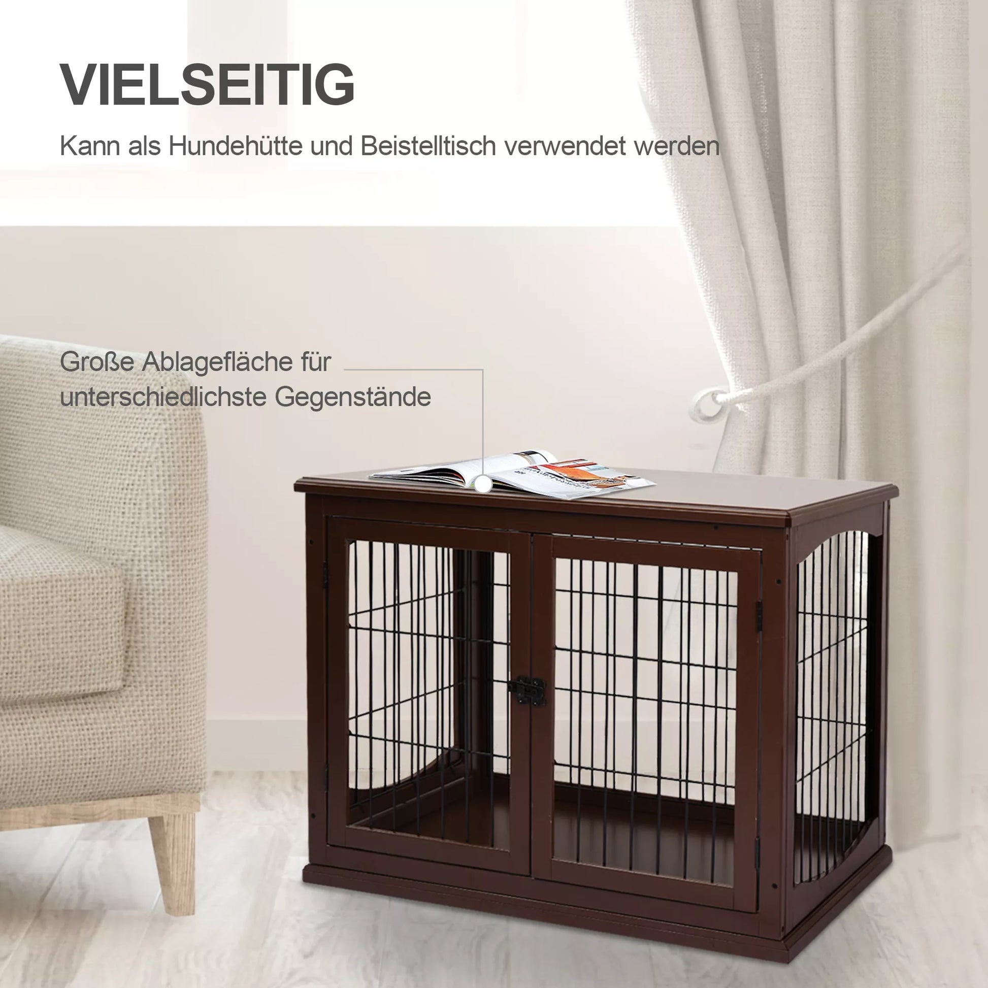 Atraskite tobulą stiliaus ir funkcionalumo derinį su šia šunų dėže. Ši praktiška šunų dėžė jūsų keturkojui draugui suteiks jaukų poilsio kampelį. Dėl durų iš abiejų pusių visada bus lengva prieiti. Pagamintas iš aukštos kokybės medžiagų, paprastas, bet žavus šunų namelio dizainas lengvai dera prie bet kokio interjero ir žada ilgaamžiškumą. Sukurkite dekoratyvius namus savo „kailinei nosytei“!