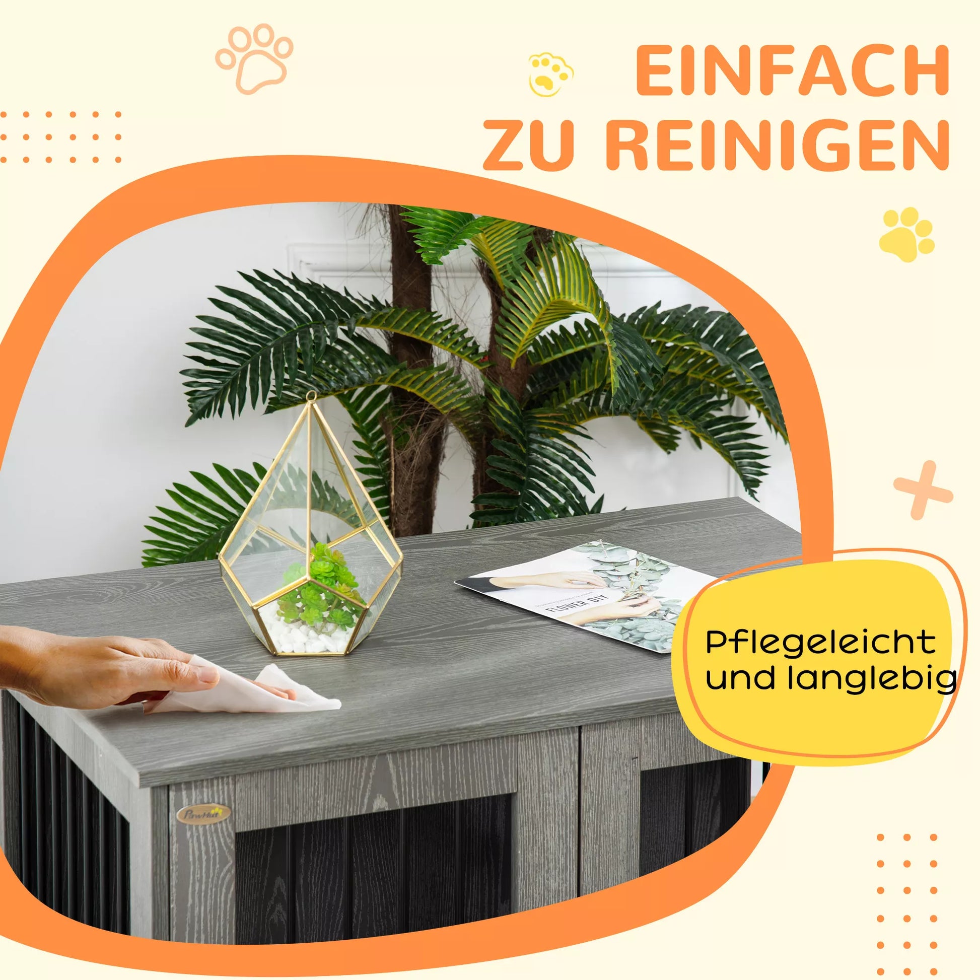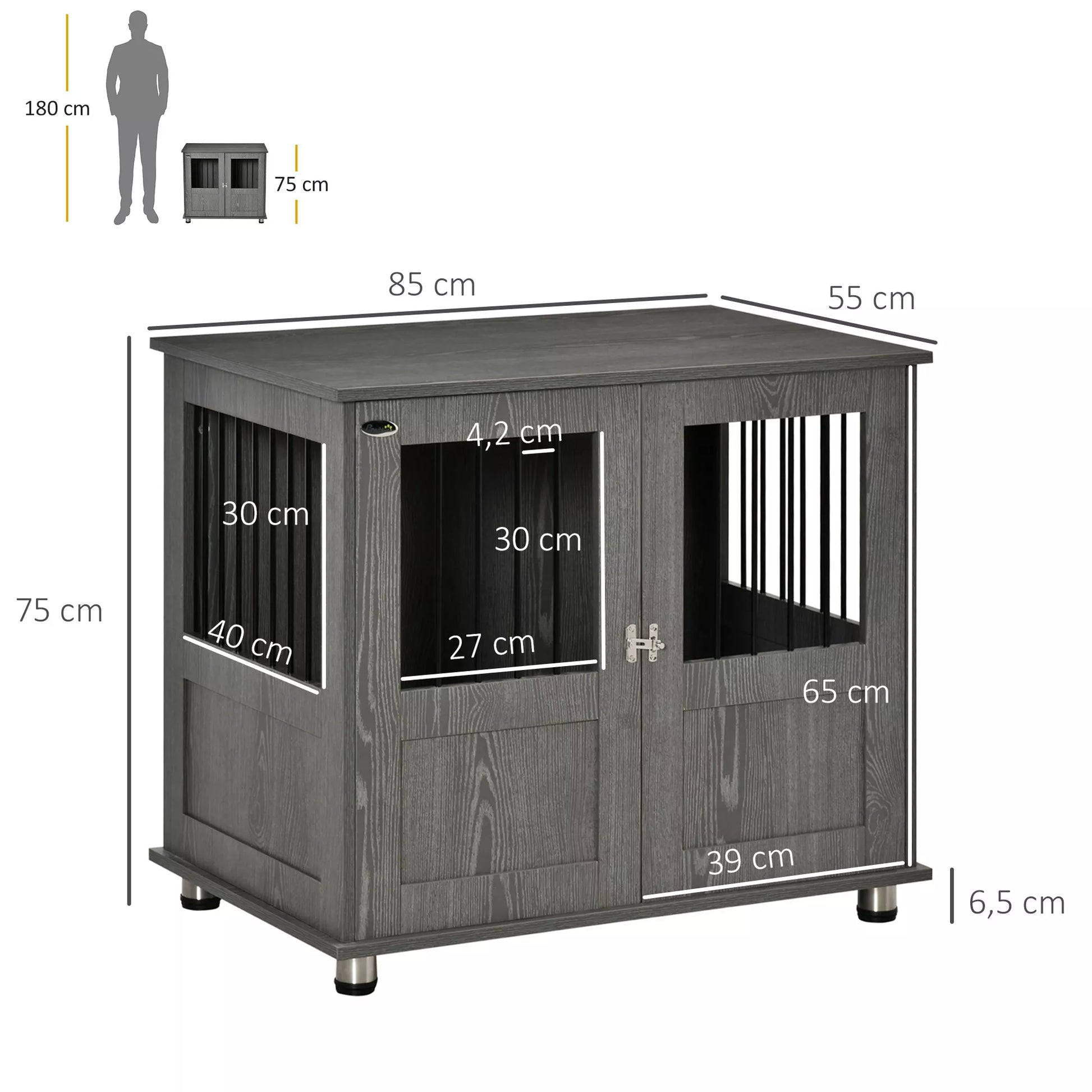 Šis šunų narvas yra patogi ir saugi jūsų šuniui poilsio vieta. Plieninės grotelės languose užtikrina gerą vėdinimą, o pakeltas dugnas apsaugo nuo drėgmės. Magnetinės durys su skląsčiais užtikrina, kad jūsų augintinis liktų saugus ir apsaugotas viduje. Galite išeiti iš patalpos, žinodami, kad jūsų šunys yra saugūs. Tai modernus augintinio narvas, sukurtas apsaugoti jūsų augintinius ir tuo pačiu suteikti stiliaus jūsų namams.