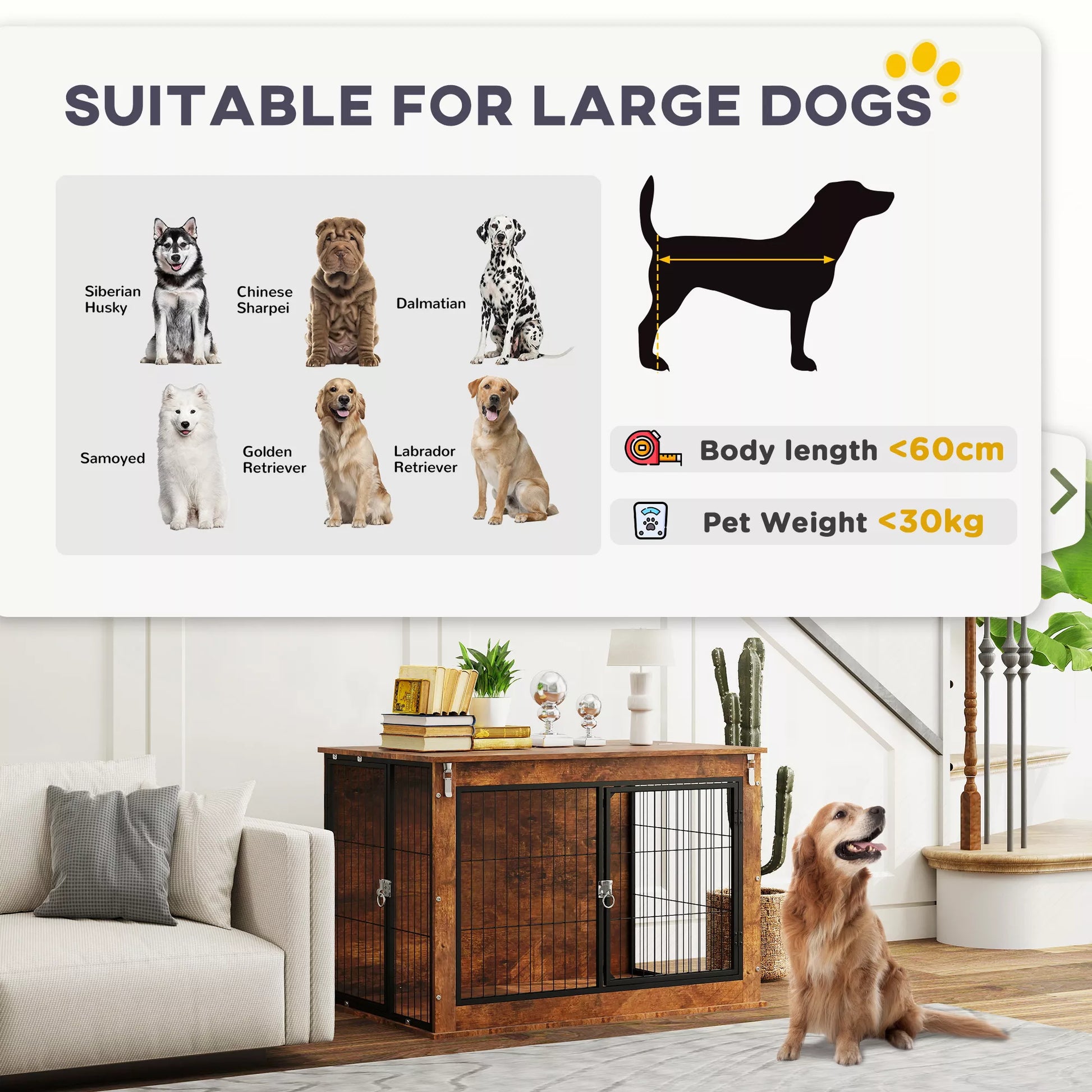 • ✔ Erdvi šunų narvo vidinė dalis suteikia vietos dideliems šunims iki 30 kg ir 60 cm ilgio