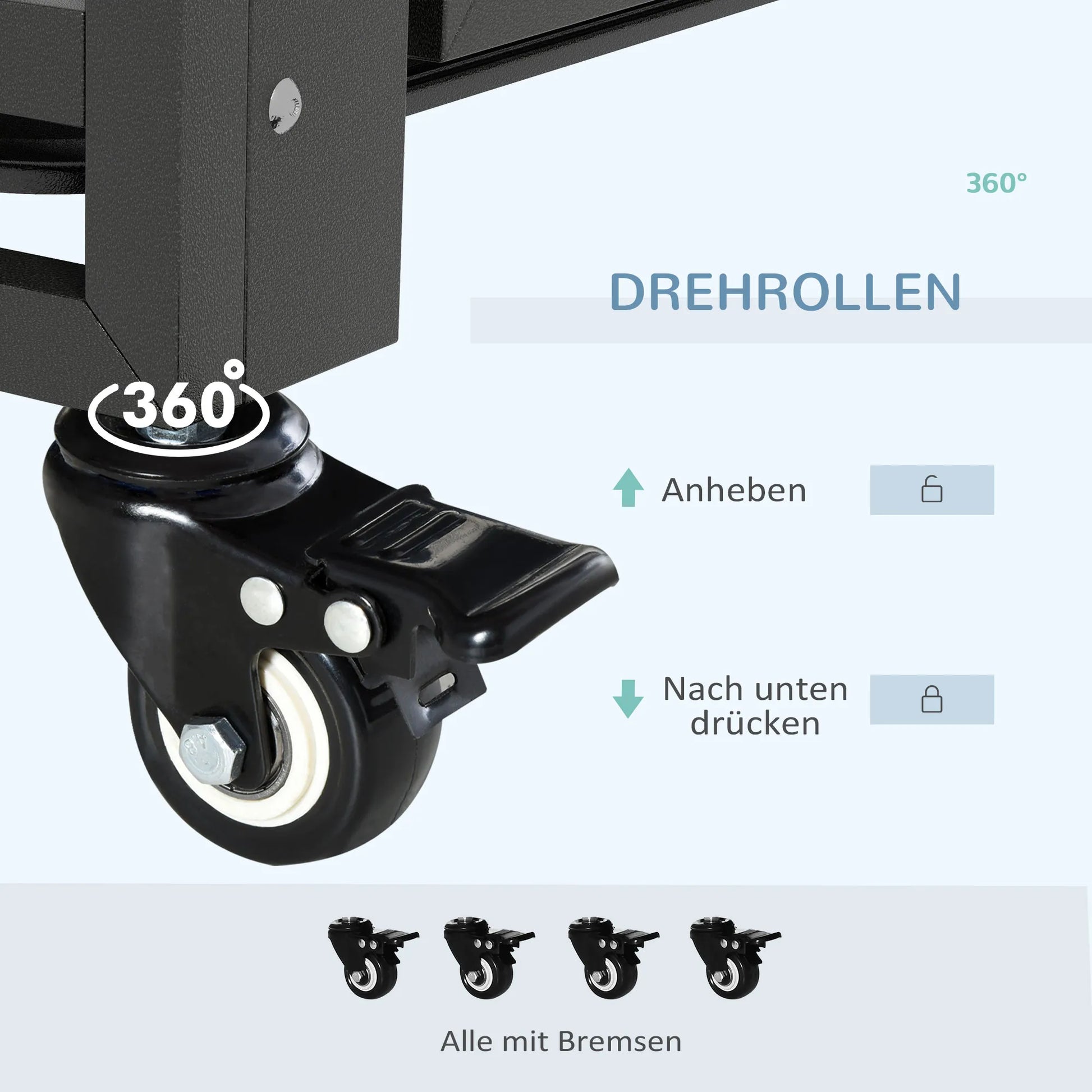 Šunų transportavimo dėžė/narvas, su dugno padėklu, užraktu, universalūs ratukai, 94 cm x 58 cm x 78 cm, juoda