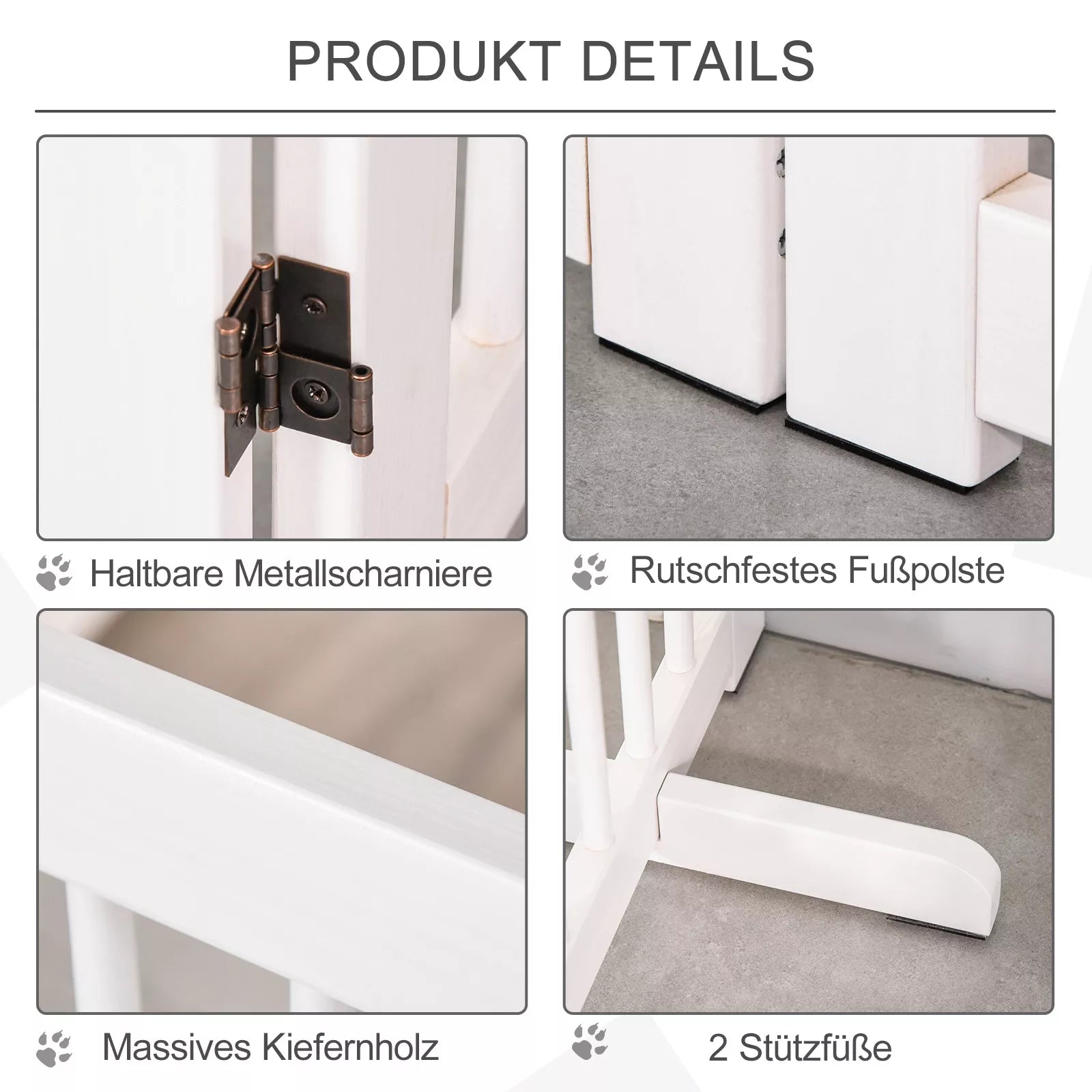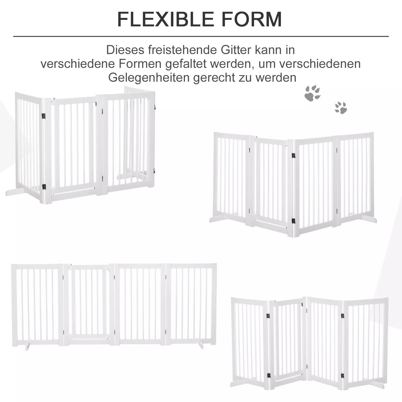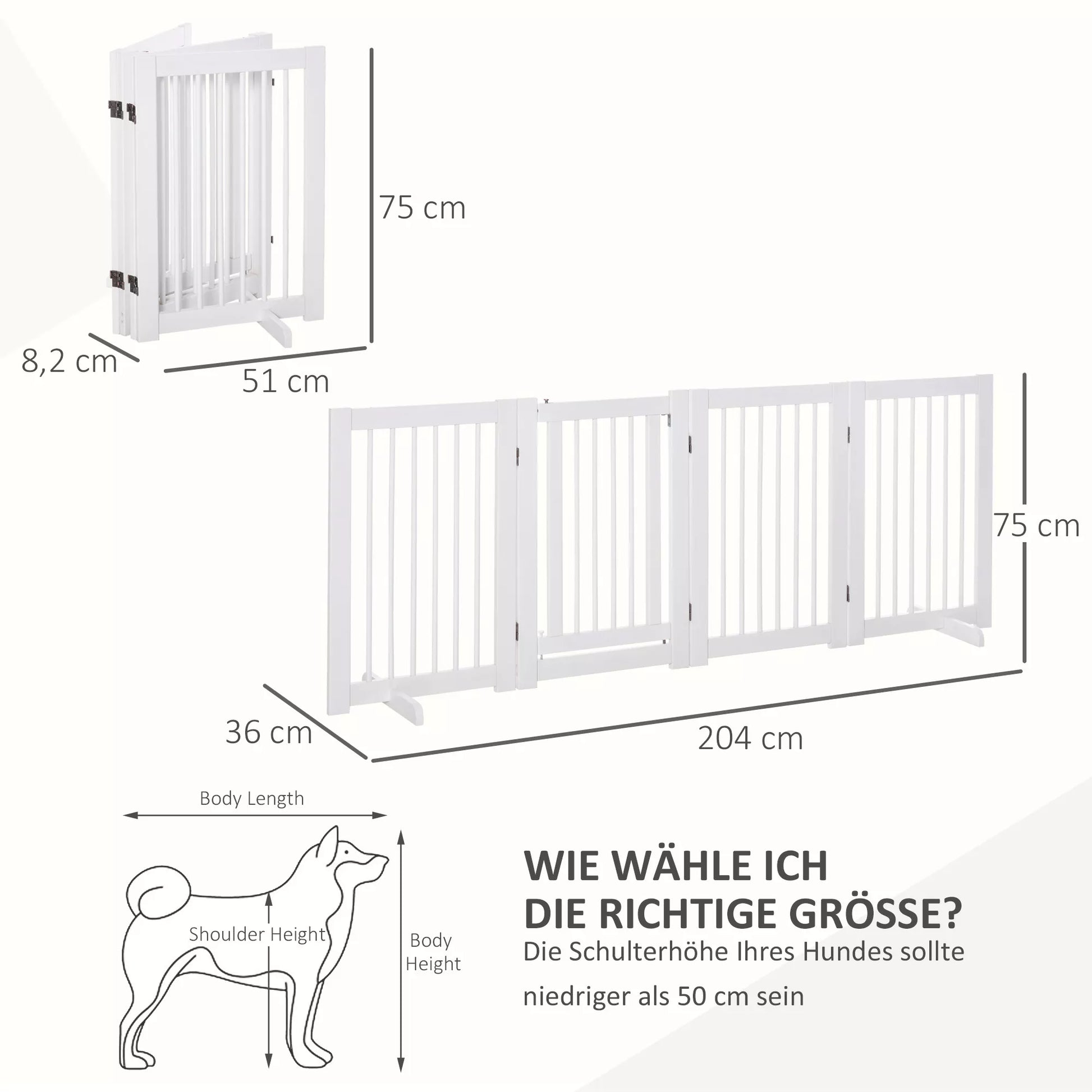 Šunų užtvaras 4 dalių, 204 x 75 cm Sulankstomi apsauginiai varteliai su durelėmis, Laisvai pastatomi šunų varteliai su 2 atraminėmis kojelėmis, Mediniai varteliai laiptams, koridoriui, virtuvei, balti