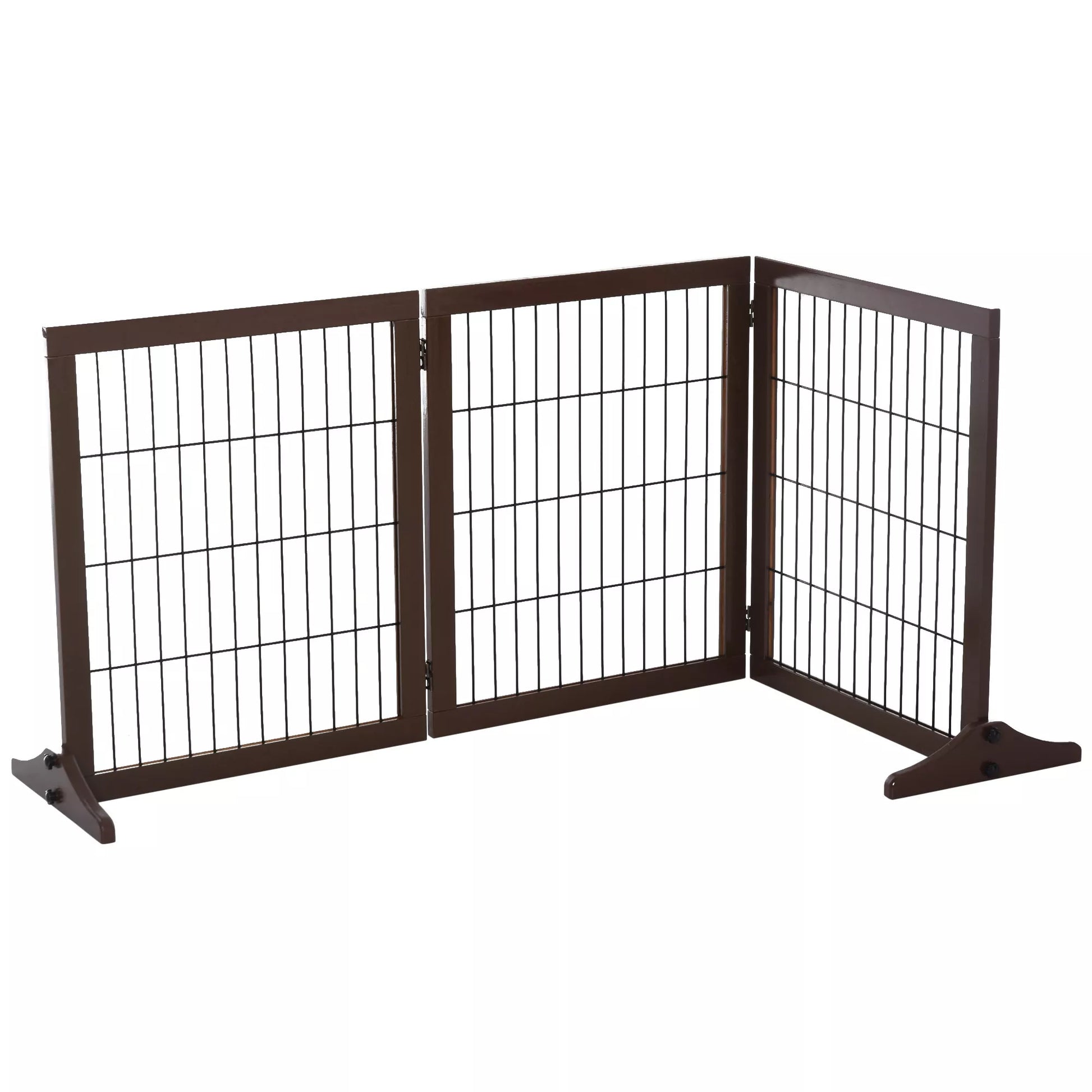 Šunų užtvaros / Apsauginė tvorelė laisvai pastatoma su kojomis 185 x 71 cm medinė šunų tvorelė, apsaugos nuo laiptų, laiptų užtvaras, šunų užtvaras laiptams, durims, virtuvei, koridoriui, 3 panelės, ruda