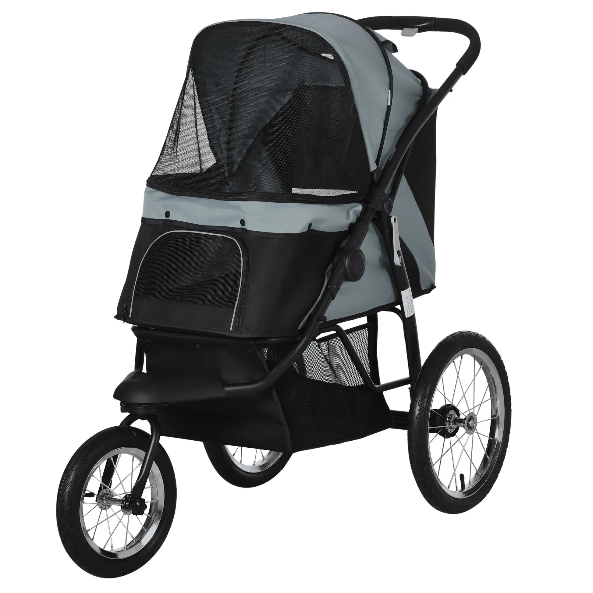 Šunų vežimėlis Šunų vežimėlis su bėgimo funkcija iki 20 kg Sulankstomas Tinklinis langas, daiktų krepšys, pilkos spalvos, 111 x 58 x 107 cm
