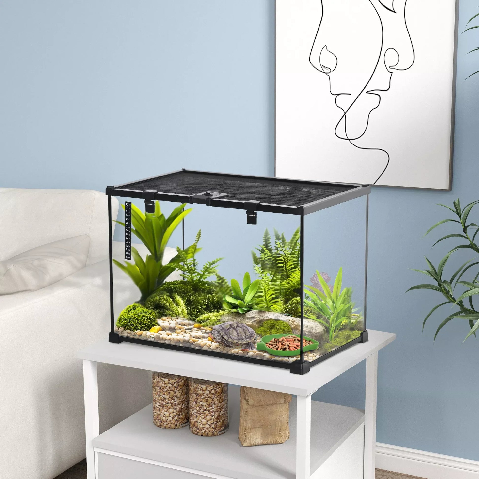 Ar norite savo augintiniams suteikti realų gamtos rojų? Mūsų "Pawhut" roplių dėžutė yra geriausias pasirinkimas! Nesvarbu, ar tai tropiniai atogrąžų miškai, ar dykumų klimatas – galite patys formuoti savo gyvūno gyvenamąją aplinką. Su lapo formos vandens baseinėliu ir juosteliniu termometru tai ideali vieta gyvūnams šliaužti. Sukurkite savo roplių rūšiai tinkamą mikrolandschaftą. Terariumas yra higieniškas ir lengvai valomas.