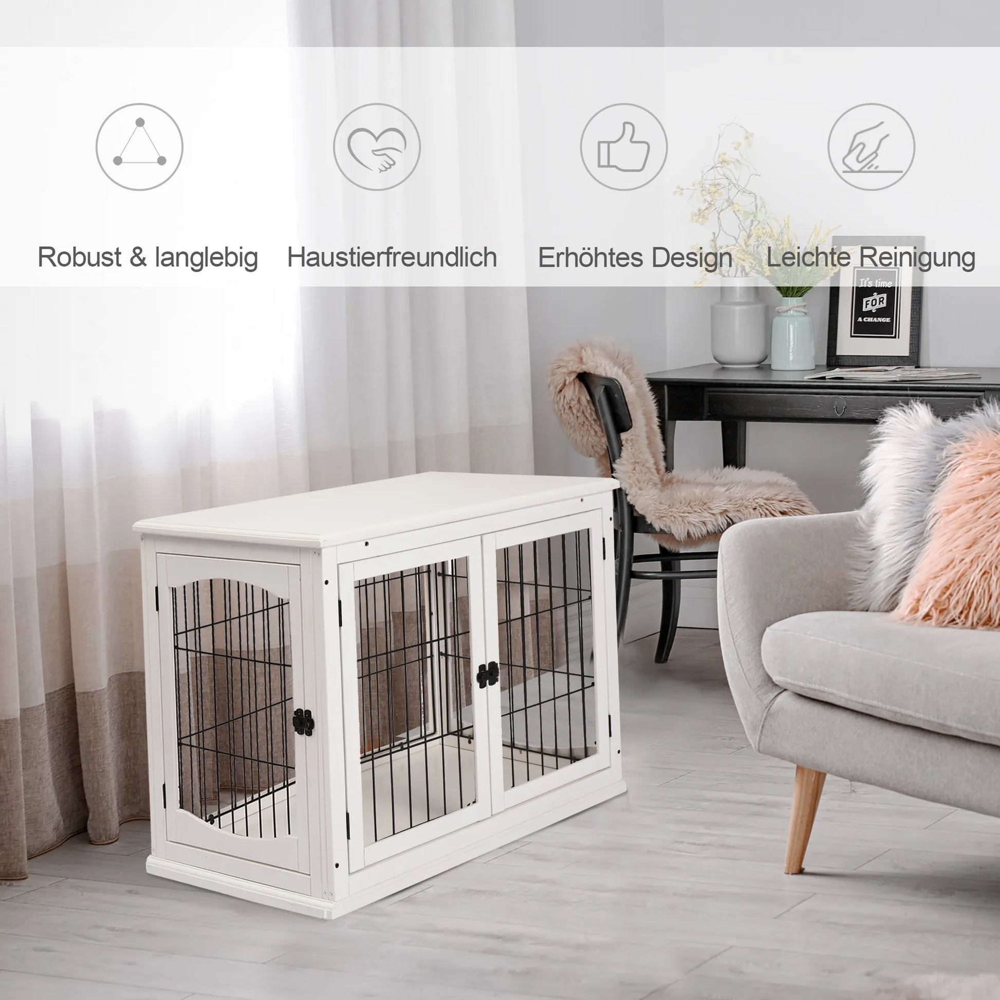 Transportavimo dėžė šunims 58,5 cm x 81 cm x 66 cm Durys, MDF mediena ir geležis, 58,5 cm x 81 cm x 66 cm, Balta